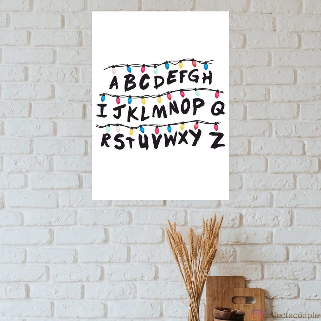 Illuminate your imagination with our captivating "Stranger Things: ABC Lights" poster, a nostalgic tribute to the iconic neon-lit typography and eerie atmosphere of the acclaimed Netflix series. Immerse yourself in the supernatural world of Hawkins, Indiana, as you journey through the alphabet with the familiar faces and mysterious phenomena that define the show. Whether you're a fan of '80s nostalgia or simply appreciate the artistry of typography, our artwork invites you to unlock the secrets of the Upside Down in a visually stunning and immersive experience.