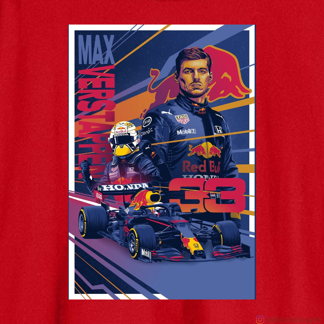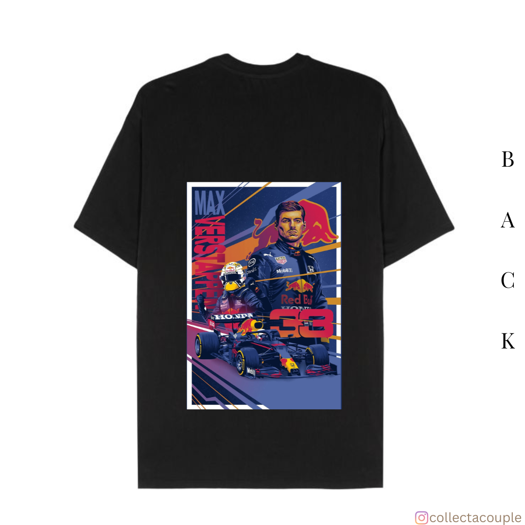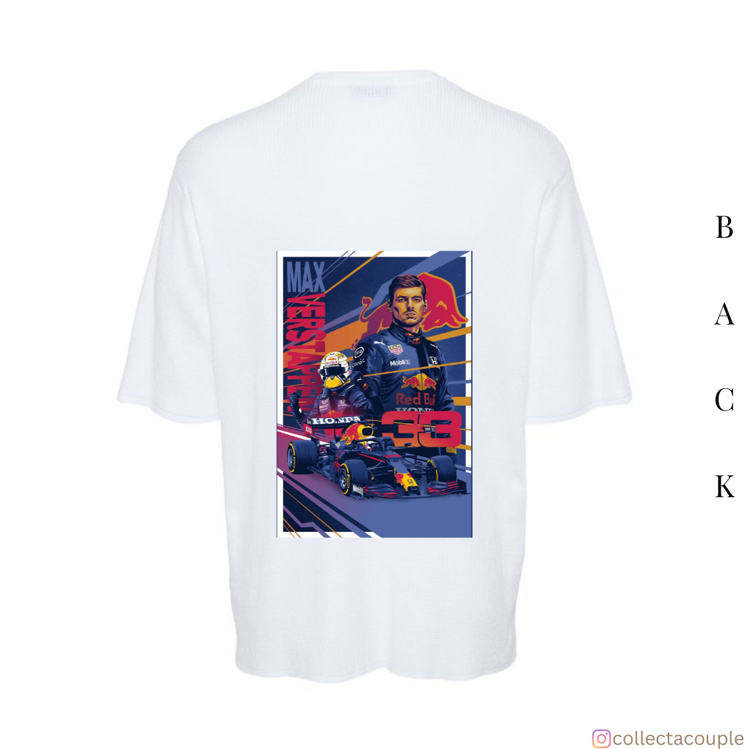 Max Verstappen: Illustrated Collage Oversized Unisex T-shirt (front and back print)