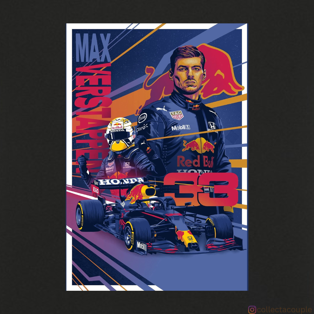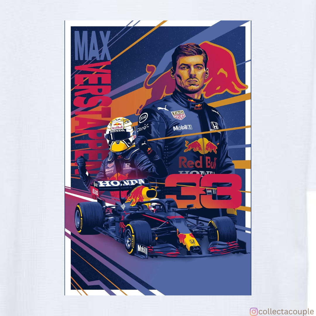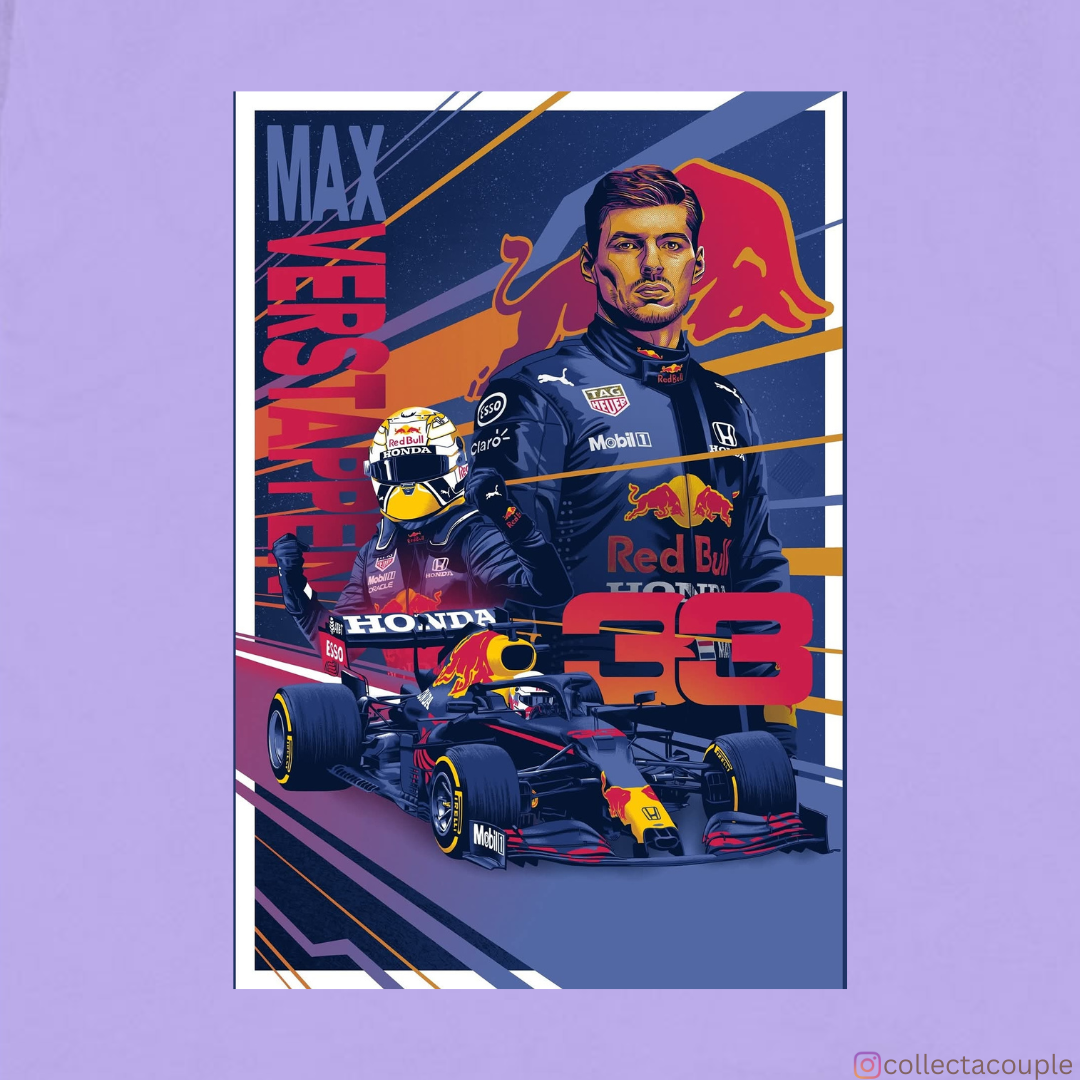 Max Verstappen: Illustrated Collage Oversized Unisex T-shirt (front and back print)