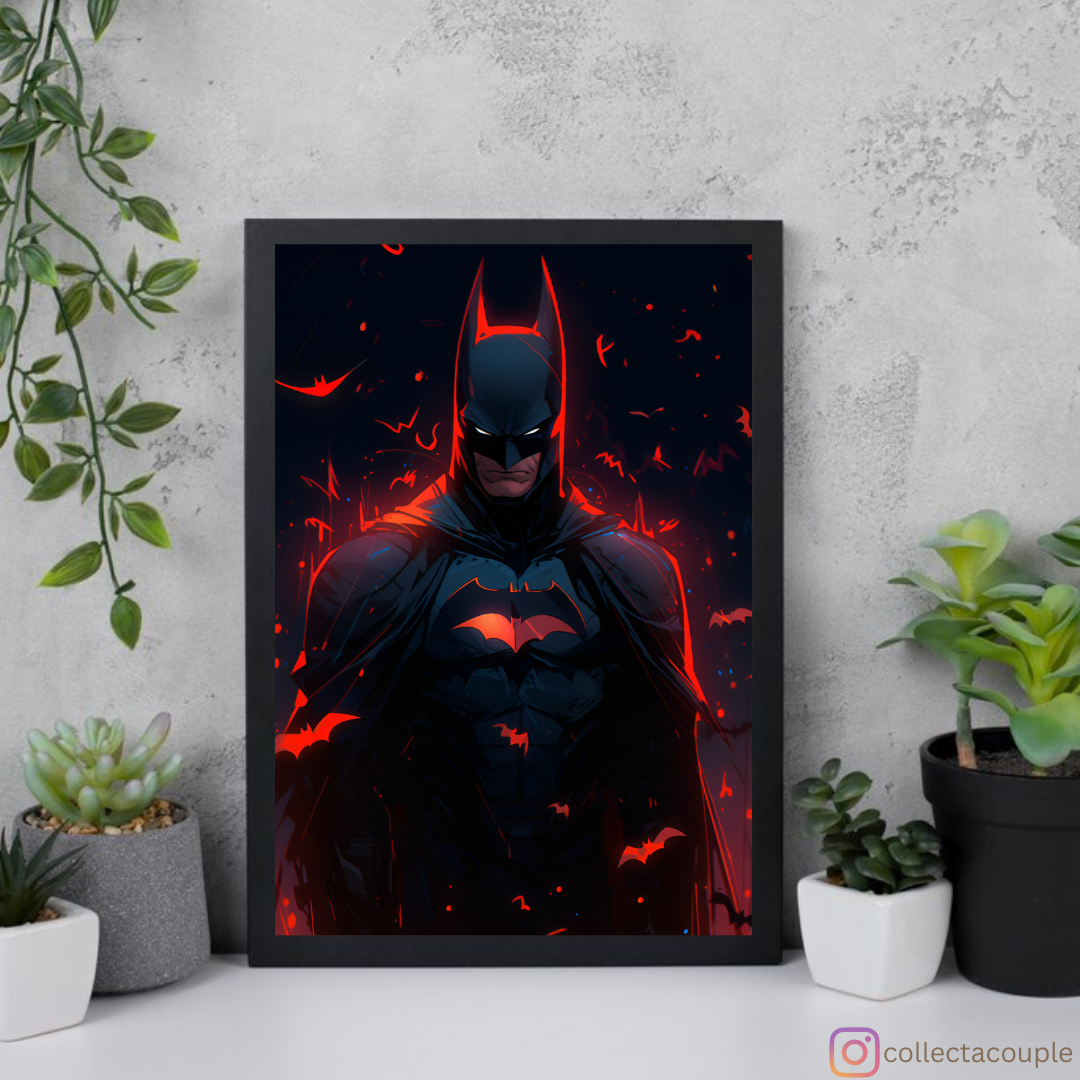 Unleash the power of the Dark Knight with our dynamic Batman pose poster. Inspired by the iconic superhero from DC Comics, this poster captures Batman in a heroic stance that exudes strength and determination.