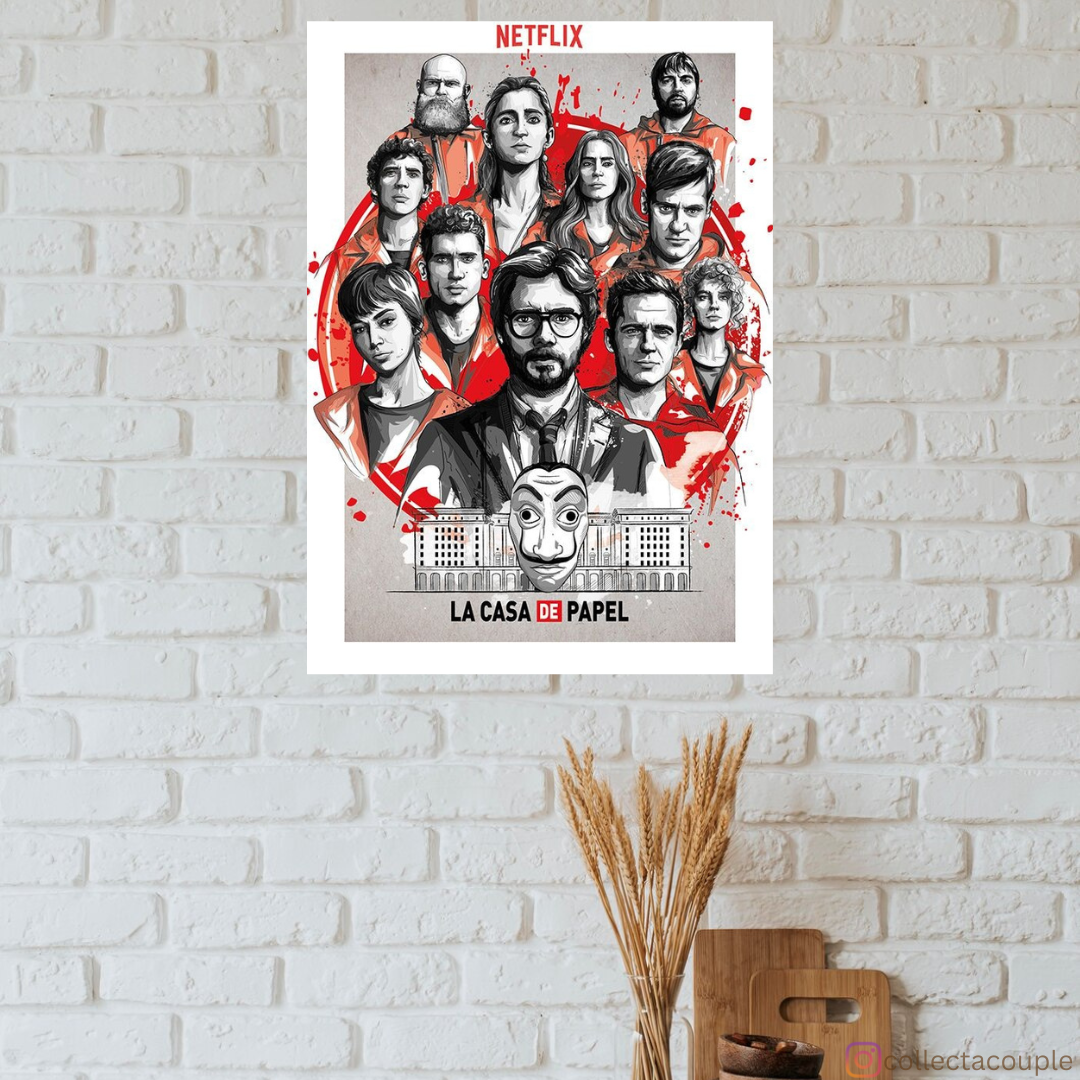 Step into the thrilling world of the greatest heist ever planned with our captivating "Money Heist: Sketch" poster, which captures the essence of the iconic Spanish television series known for its intricate plot, complex characters, and high-stakes drama. Join the Professor and his band of cunning criminals as they orchestrate a daring plan to rob the Royal Mint of Spain, facing off against the authorities and their own personal demons along the way. Immerse yourself in the intrigue and excitement of Money Heist with this stunning artwork.