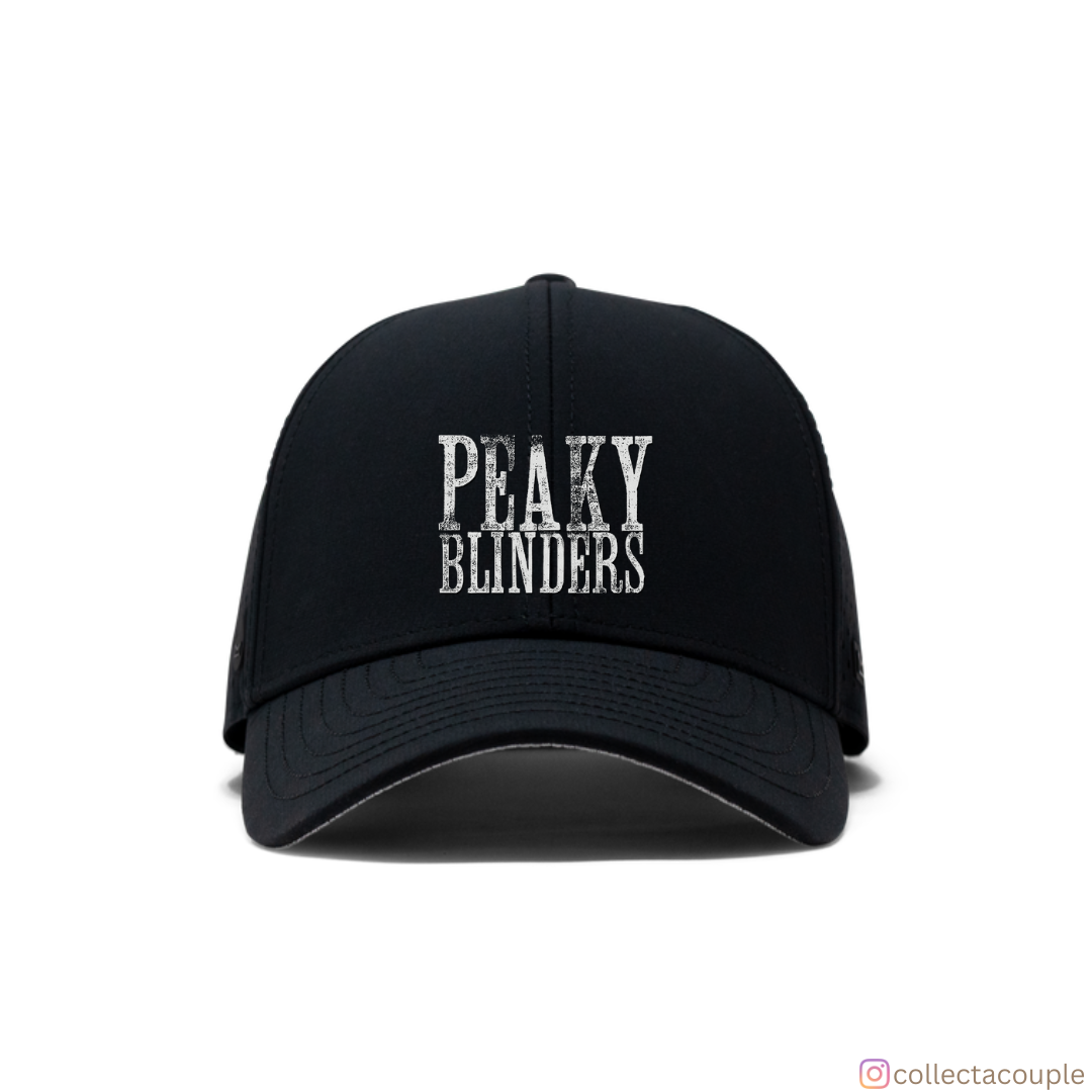 The "Peaky Blinders" logo is distinctive and instantly recognizable, encapsulating the gritty and stylish essence of the show. The logo features bold, serif typography with a vintage feel, reflecting the early 20th-century setting of the series. The text is often set in a weathered, distressed style, evoking the rough, industrial atmosphere of Birmingham, England, where the story takes place.