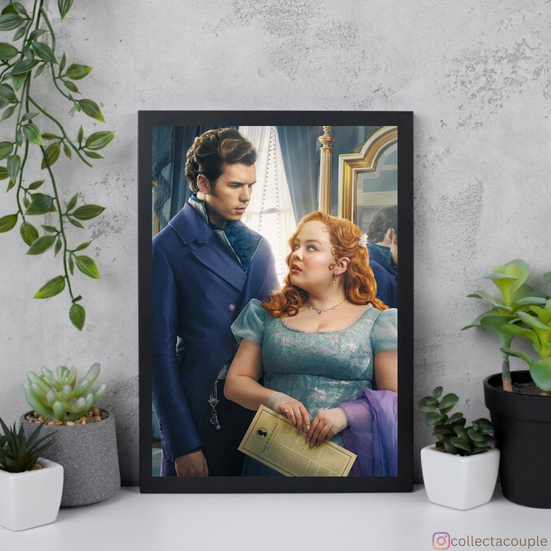 Celebrate the enchanting romance of Penelope and Colin from the hit series "Bridgerton". Featuring the beloved characters in their elegant elegant attire, this poster captures the charm and intrigue of their relationship.