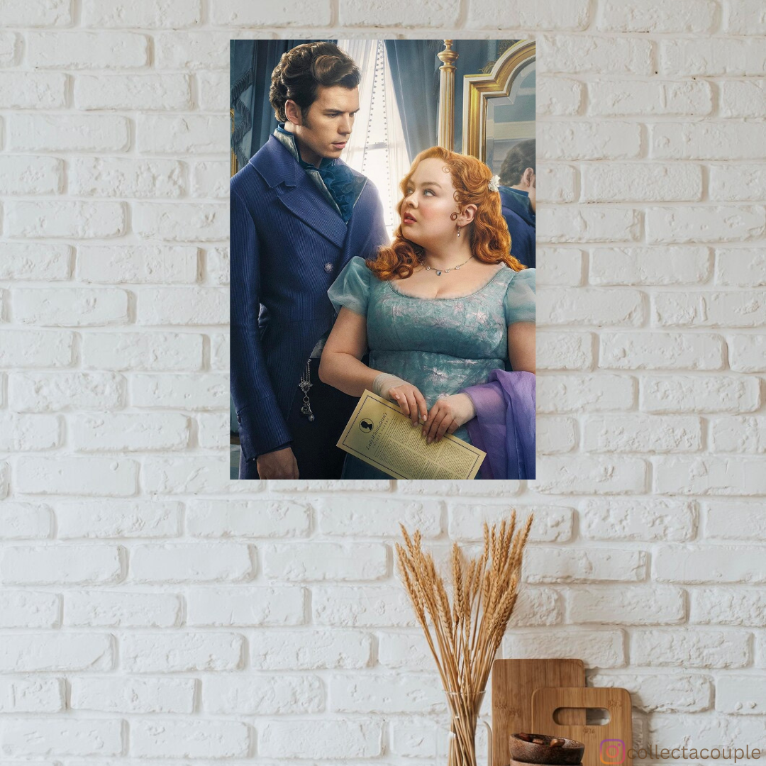 Celebrate the enchanting romance of Penelope and Colin from the hit series "Bridgerton". Featuring the beloved characters in their elegant elegant attire, this poster captures the charm and intrigue of their relationship.