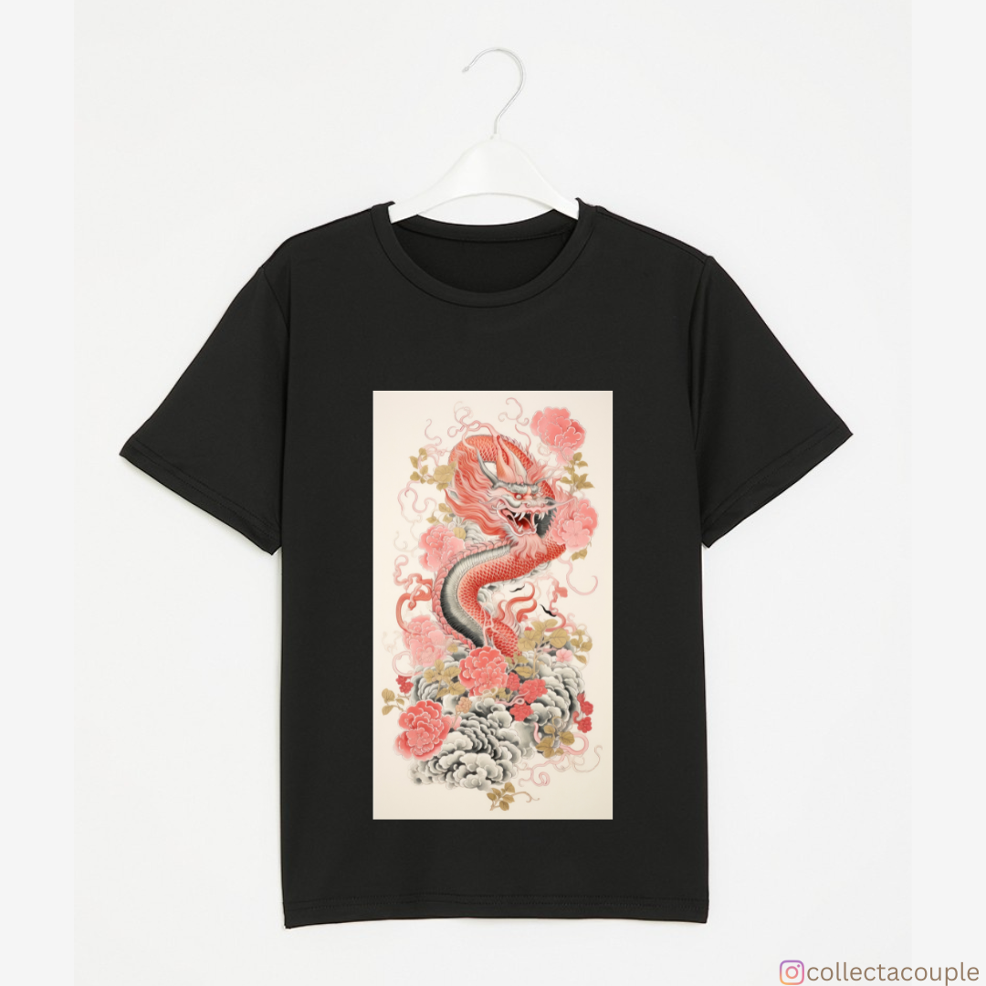 Chinese Dragon: Illustrated Pink Unisex T-shirt