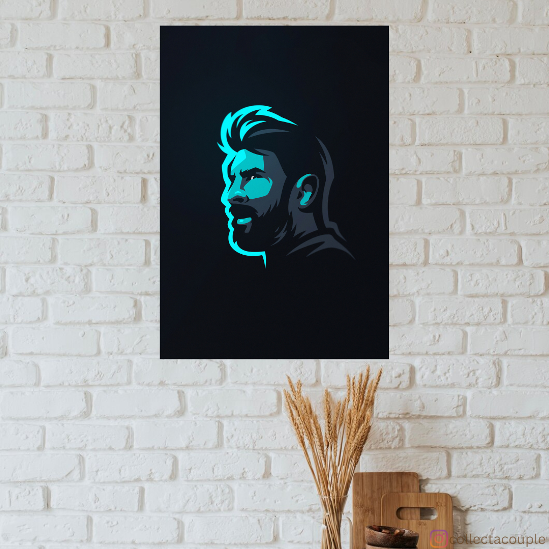 Celebrate the brilliance of Lionel Messi, one of football's greatest talents, with our captivating poster showcasing his iconic footballer representing Argentina in a fun neon blue silhouette.