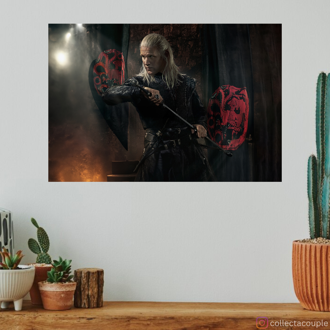 Embrace the fierce legacy of House Targaryen with our stunning Daemon Targaryen Poster. Featuring the formidable prince from the hit series, this poster captures Daemon Targaryen's intense gaze and commanding presence.