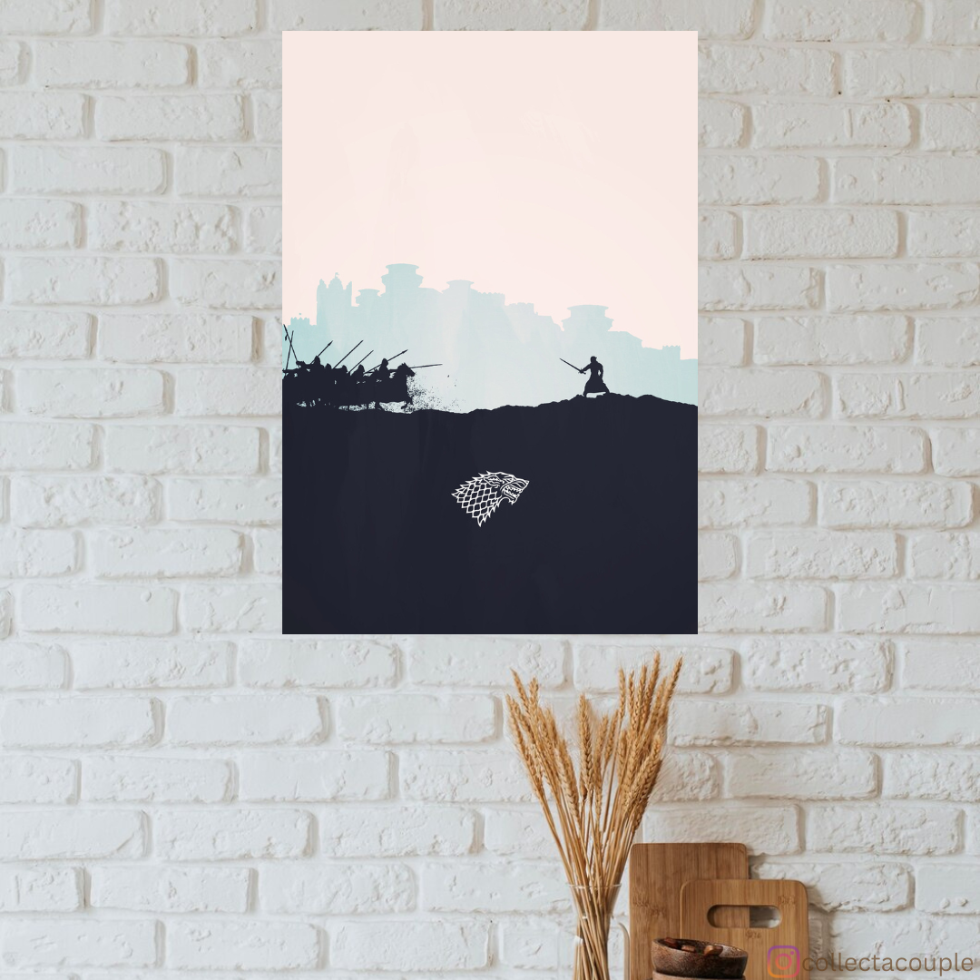 Embrace the spirit of the North with our House Stark Illustrated Battle Silhouette Poster, capturing the fierce loyalty and resilience of House Stark, featuring a dynamic silhouette design that brings the epic battles of Westeros to life.