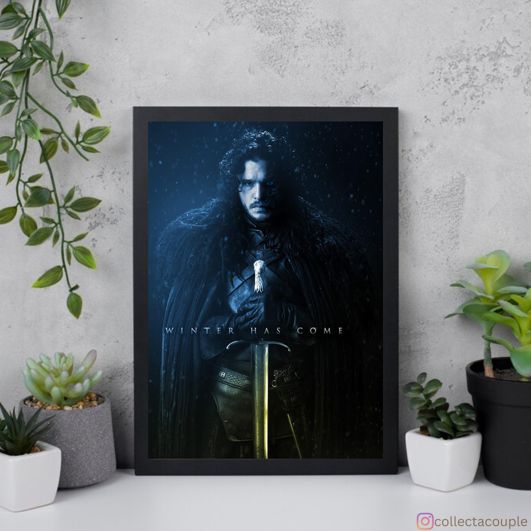Immerse yourself in the epic world of Westeros with our Jon Snow Pose Poster. Capturing the brooding intensity and heroism of one of "Game of Thrones" most iconic characters.