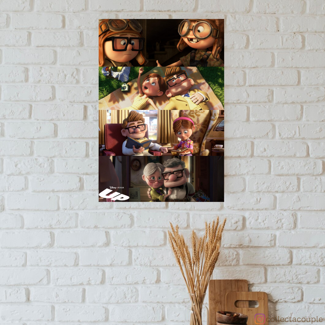 Celebrate the timeless love story of Carl and Ellie with our enchanting "Up" Carl & Ellie Collage Poster. This beautiful poster captures the heartwarming moments from Disney-Pixar's beloved film "Up," showcasing the enduring bond between Carl and Ellie.