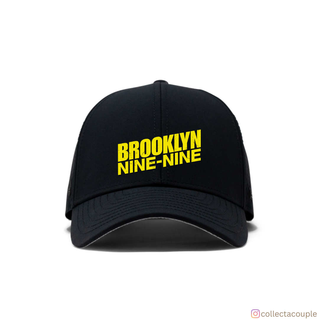 The "Brooklyn Nine-Nine" logo reflects the essence of the popular American television sitcom created by Michael Schur and Dan Goor. The logo features bold, blocky lettering with a distinctive police badge design incorporated into the typography, emphasizing the show's setting and theme.