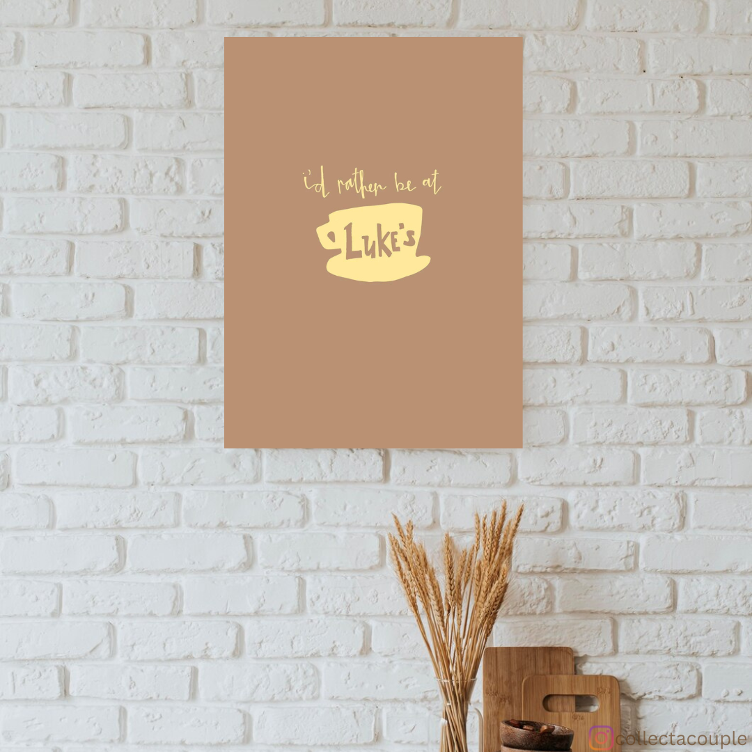 Celebrate your love for "Gilmore Girls" with our minimalistic 'I'd Rather Be at Luke's' Poster. Featuring the logo of the beloved diner from Stars Hollow, this poster makes a statement to rather be at the cozy, welcoming atmosphere of Luke's Diner where coffee and conversation flow endlessly.