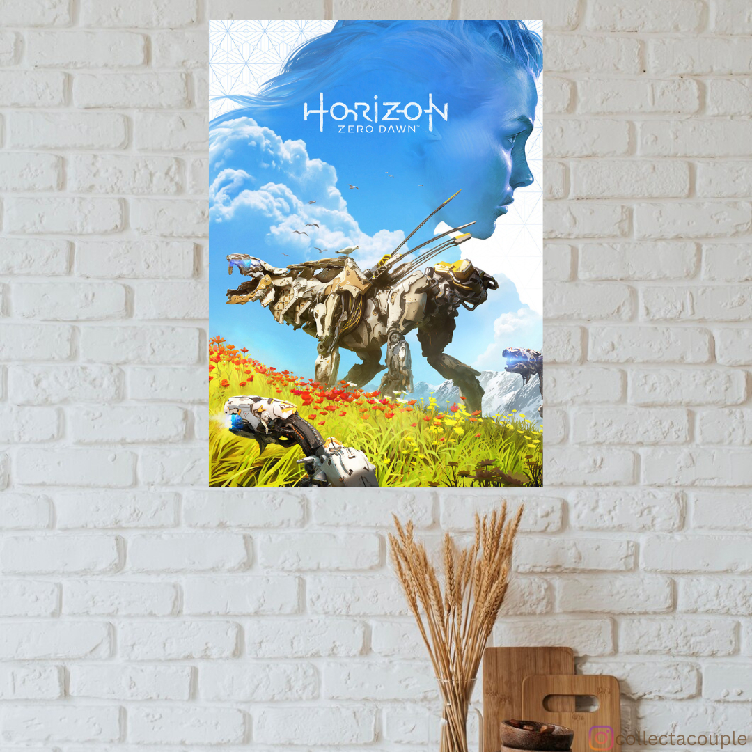 Immerse yourself in the breathtaking world of Horizon Zero Dawn with our stunning Scenic Poster, capturing the awe-inspiring landscapes, characters and vibrant beauty of the game's post-apocalyptic setting, bringing Aloy's epic journey to life.