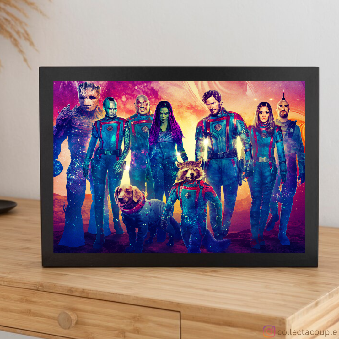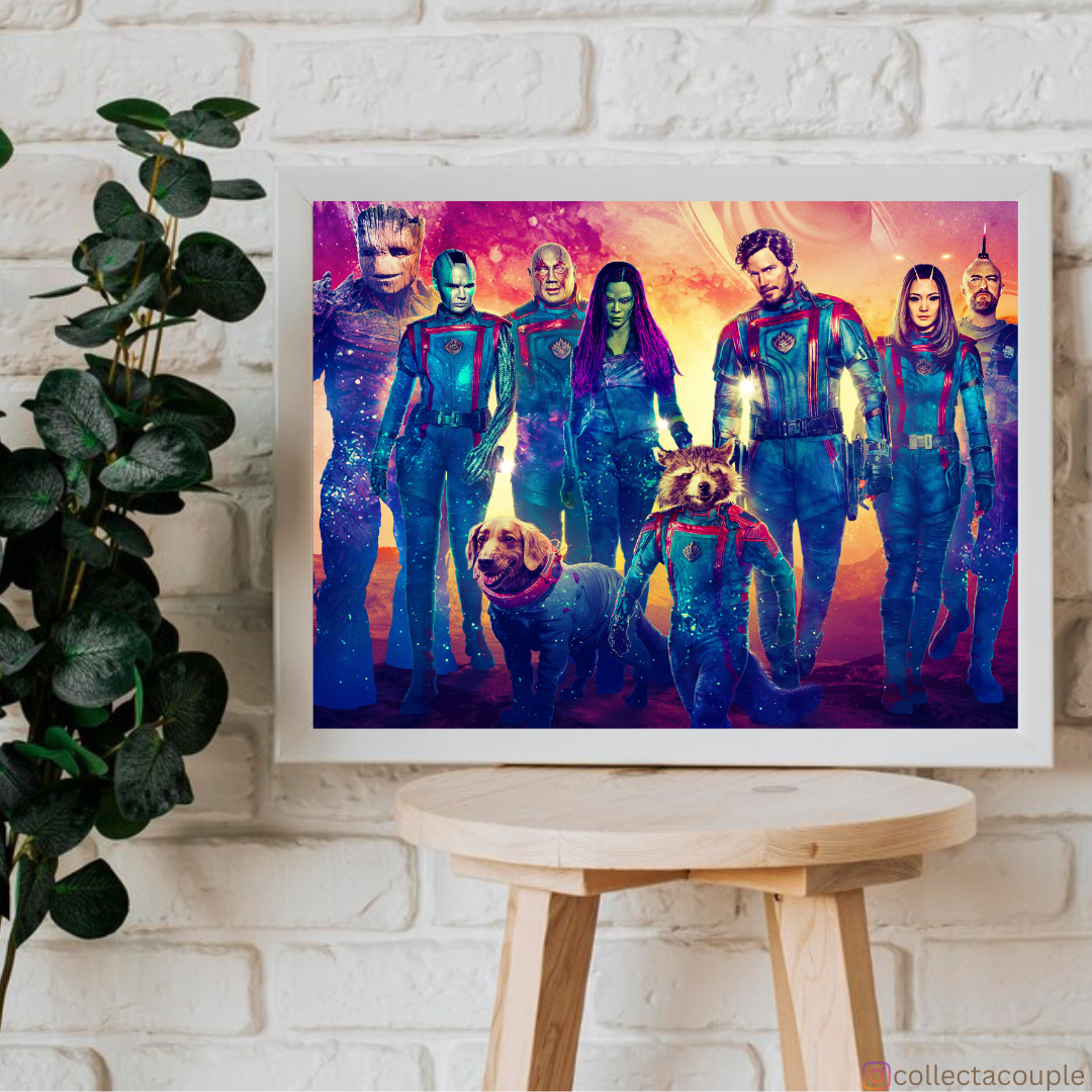 Immerse yourself in the cosmic adventure of Marvel's Guardians of the Galaxy with our exclusive cast poster, featuring the beloved characters and bringing the intergalactic team to life.