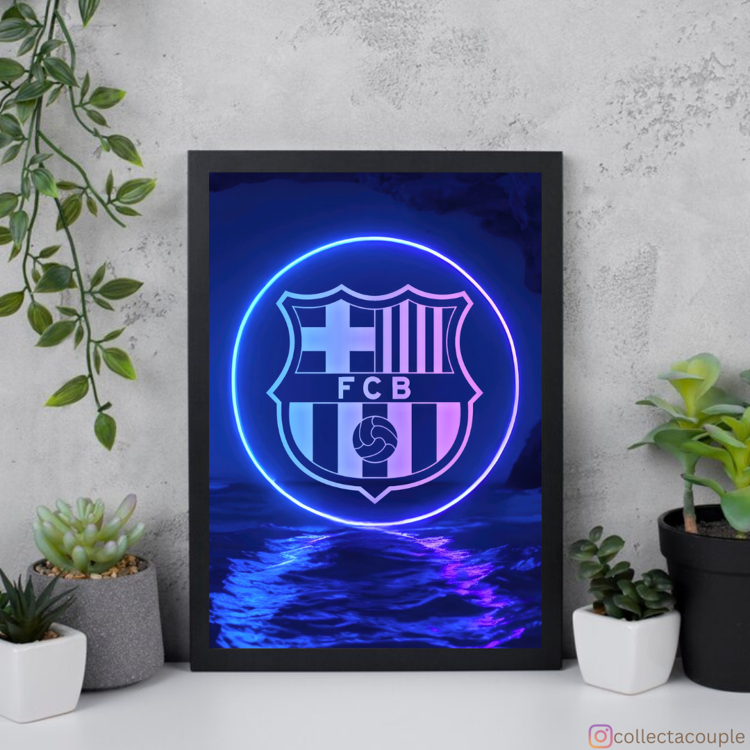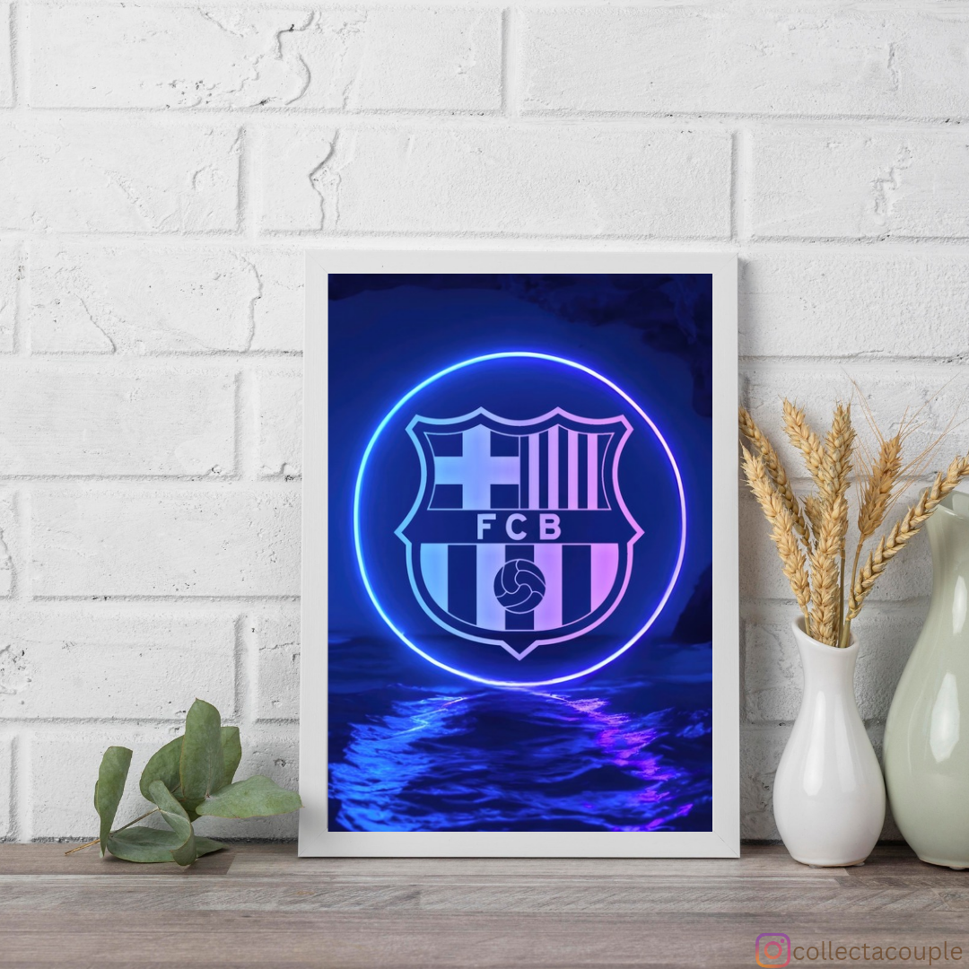 Illuminate your space with the vibrant energy of our FC Barcelona Neon Blue Logo Poster. Perfect for passionate fans of the iconic football club, this poster showcases the striking neon blue rendition of the FC Barcelona logo.