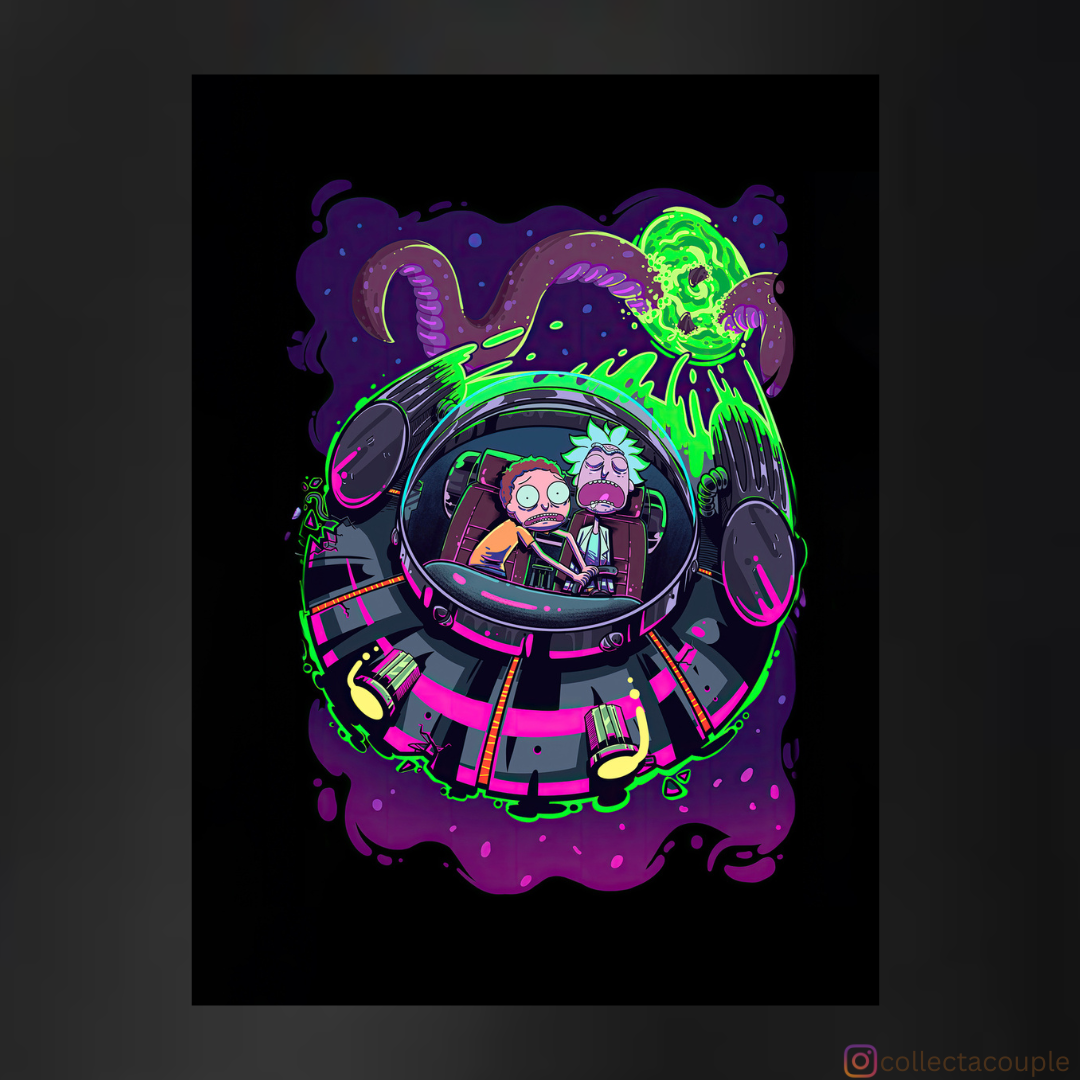 Embark on an intergalactic adventure with our captivating "Rick & Morty: In Space" poster, which captures the irreverent humor, mind-bending escapades, and cosmic chaos that define the beloved animated series. Join Rick Sanchez, the eccentric and alcoholic scientist, and his hapless grandson Morty Smith as they traverse the vastness of the multiverse, encountering bizarre aliens, alternate dimensions, and existential crises along the way. Immerse yourself in the zany world of Rick and Morty with this eye-catching artwork.