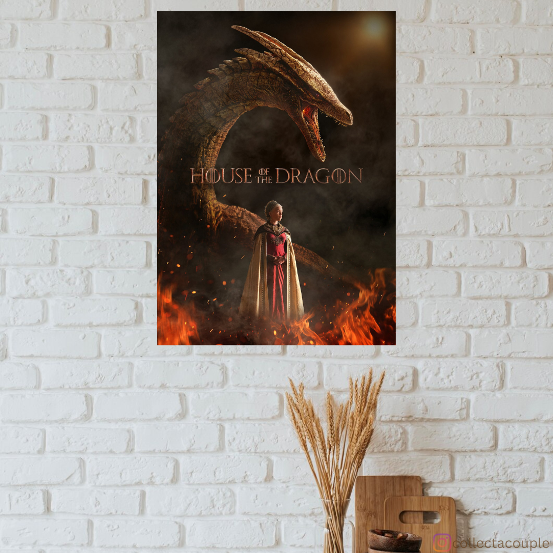 Prepare to be enthralled by the fiery spirit of House Targaryen with our captivating poster featuring Rhaenyra Targaryen, a central figure in the upcoming series "House of the Dragon." As the first-born daughter of King Viserys I Targaryen, Rhaenyra embodies the legacy, ambition, and tumultuous history of her legendary family. Step into the world of Westeros and witness the rise of a dragon queen whose destiny is entwined with power, passion, and betrayal.