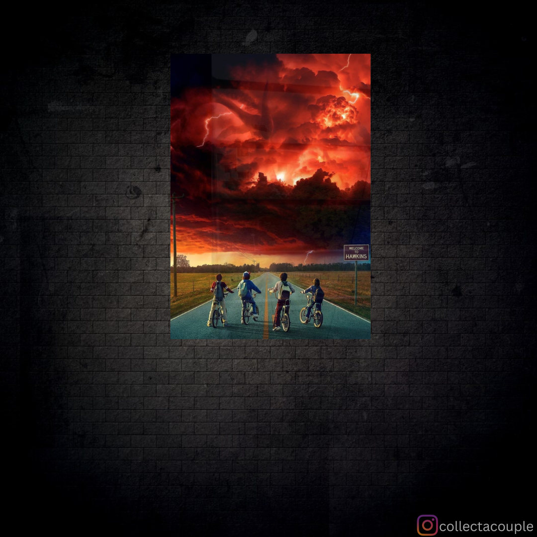 Our "Stranger Things Hawkins" Acrylic Poster, a captivating homage to the enigmatic town of Hawkins from the hit Netflix series. This poster transports fans to the heart of the supernatural mysteries and 80s nostalgia that define the world of "Stranger Things.