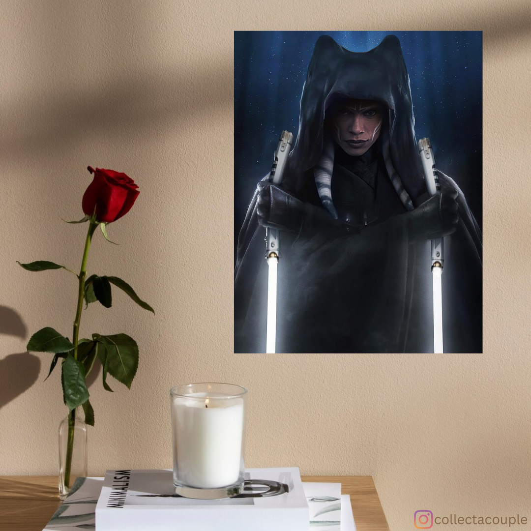 Ahsoka Tano, a pivotal figure in the Star Wars universe, embodies resilience, courage, and the unwavering dedication to uphold justice. As a former Jedi Padawan, she navigates the tumultuous currents of the galaxy with wisdom and grace, leaving an indelible mark on all she encounters. This poster celebrates the remarkable journey of Ahsoka Tano, highlighting her profound impact on both the Jedi Order and the galaxy at large.