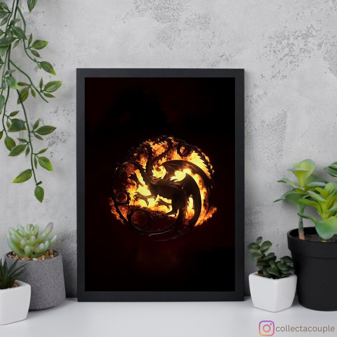 Dive into the rich tapestry of Westerosi history with our captivating poster featuring the iconic sigil of House Targaryen, the legendary dragonlords of old. As a central motif in the upcoming series "House of the Dragon," the Targaryen sigil represents a legacy of power, conquest, and fire that has left an indelible mark on the history of the Seven Kingdoms. Step into the world of dragons and dynasties as we explore the enduring symbol of House Targaryen and the myths and mysteries that surround it.
