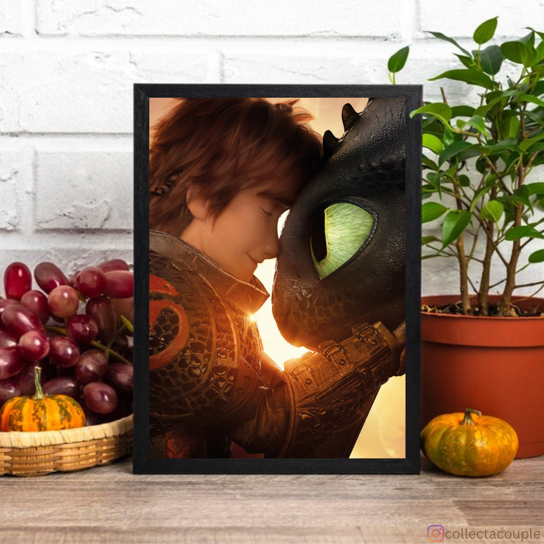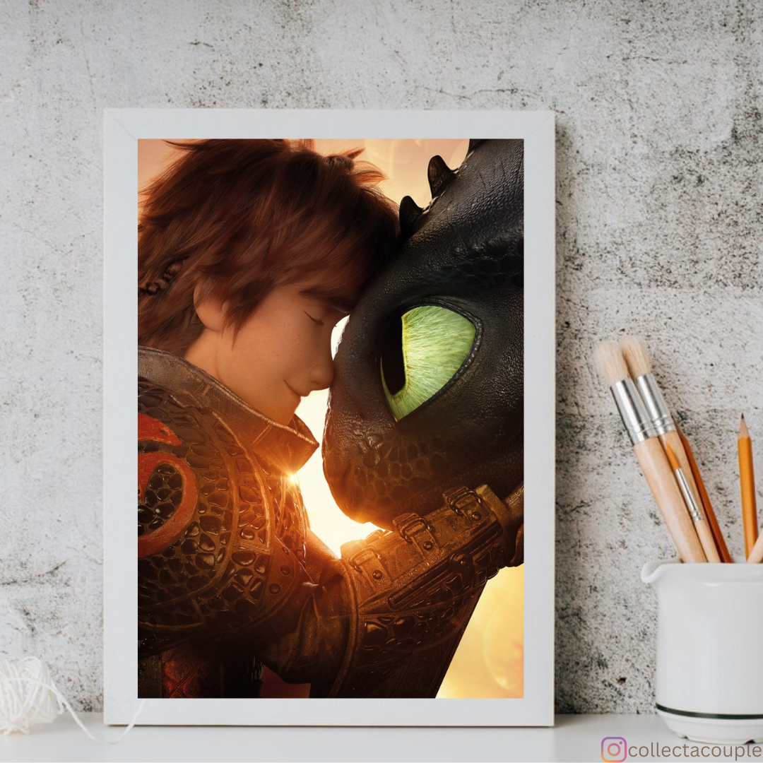 Embark on an unforgettable adventure with our heartwarming poster featuring Hiccup and Toothless from the beloved animated film "How to Train Your Dragon." This enchanting artwork celebrates the extraordinary bond between a young Viking and a mysterious Night Fury dragon as they defy tradition, overcome obstacles, and discover the true meaning of friendship.