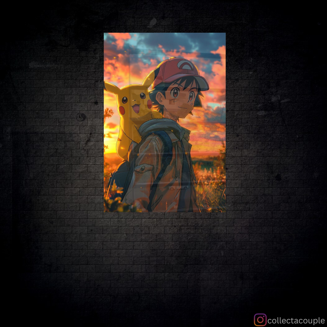 Our Pikachu and Ash Acrylic Poster, a heartwarming tribute to one of the most iconic duos in the world of Pokémon. This poster captures the special bond between Pikachu, the lovable electric-type Pokémon, and Ash Ketchum, his dedicated trainer, in a vibrant and enchanting artwork.