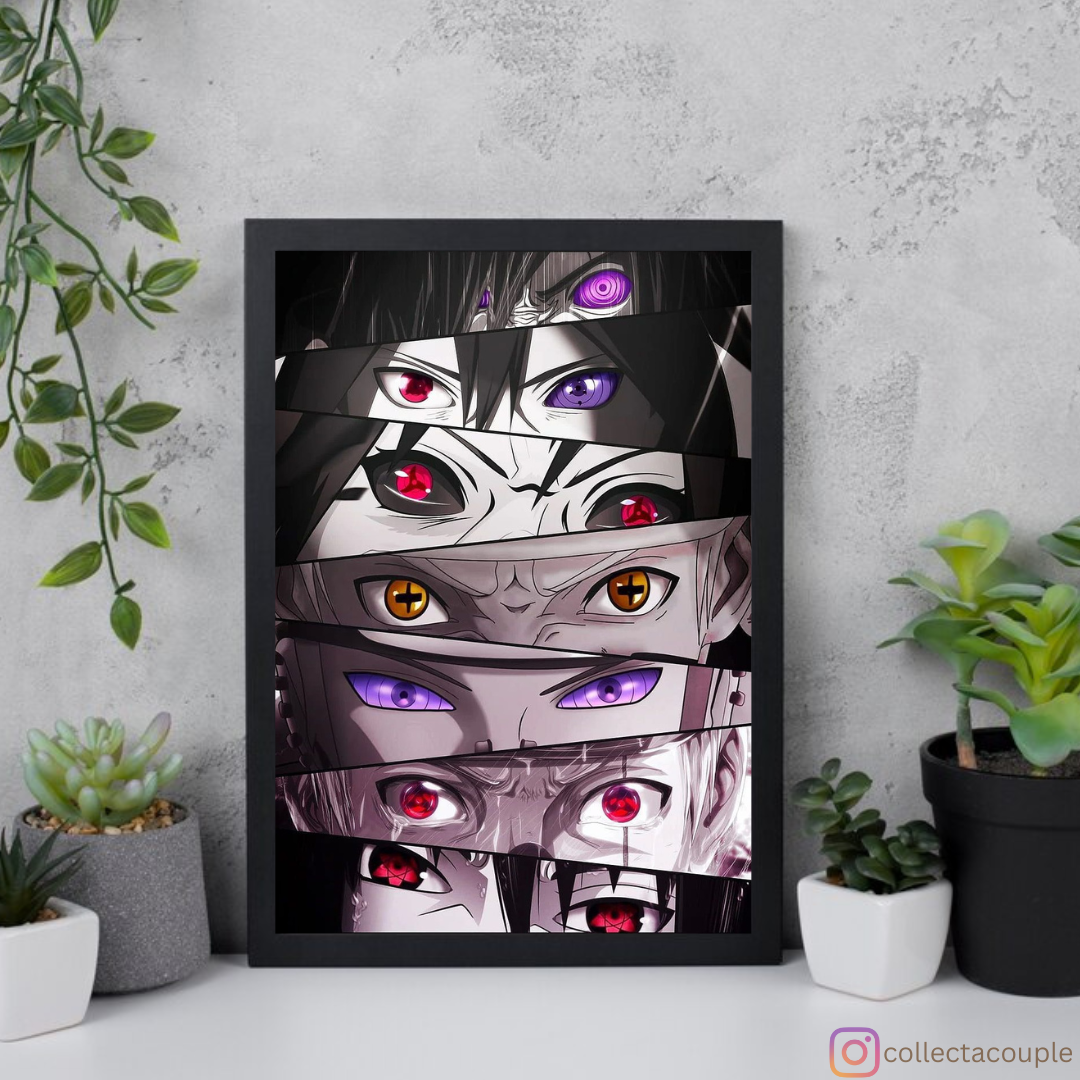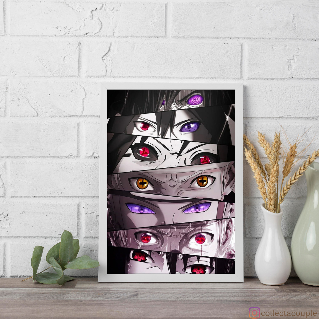 Enter the captivating world of ninjas and shinobi with our mesmerizing "Naruto: Eyes" poster, which offers a striking glimpse into the iconic anime and manga series loved by fans around the globe. Immerse yourself in the adventure, friendship, and battles of Naruto Uzumaki as he embarks on a journey to become the greatest ninja of all time. Join us as we celebrate the spirit and determination of Naruto and his companions in this captivating artwork.