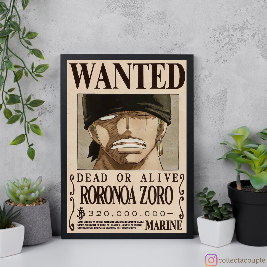 Step into the world of adventure with our Zoro Wanted Poster, inspired by the legendary swordsman from your favorite anime series. This poster captures Zoro's iconic look and fierce determination, making it a great way to elevate your walls.