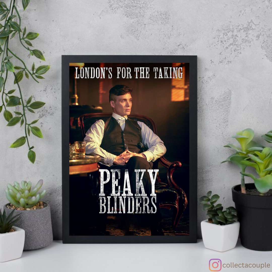 Step into the gritty world of the Peaky Blinders with our exclusive "London's for the Taking" poster. Inspired by the iconic series set in 1920s Birmingham, this striking poster captures the essence of Tommy Shelby's dynamic character.