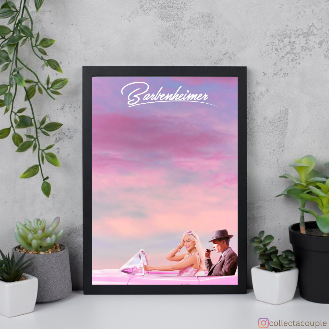 Introducing the Barbie x Oppenheimer In the Car Poster – a unique and playful mashup that brings together the iconic doll and the legendary physicist in an unexpected and fun scenario inspired from the popular BarbenHeimer!