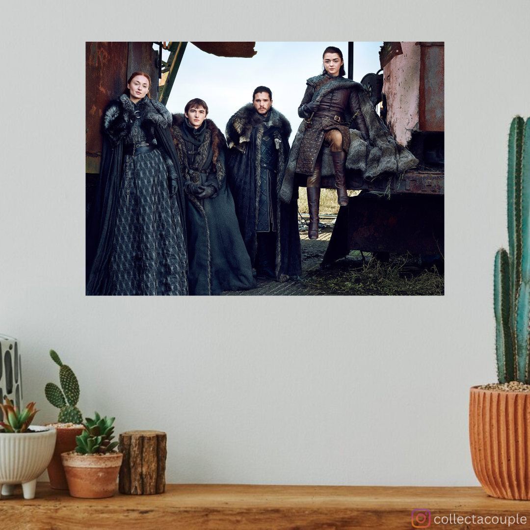 Honor the legacy of House Stark with our stunning Game of Thrones Stark Siblings Poster, featuring Sansa, Arya, Jon, and Bran. This poster beautifully captures the resilience, courage, and loyalty of the Stark family as they navigate the treacherous world of Westeros.