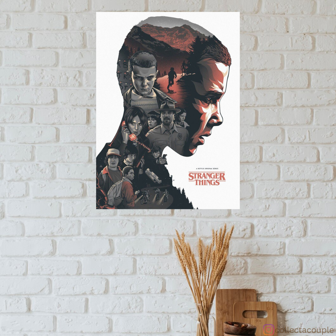 Dive into the enigmatic world of Hawkins, Indiana, with our mesmerizing "Stranger Things: Eleven Collage" poster, celebrating the extraordinary journey of the telekinetic girl known as Eleven. Immerse yourself in the haunting atmosphere, nostalgic charm, and supernatural intrigue of the hit Netflix series as we pay tribute to one of its most iconic characters. Whether you're a fan of Eleven's mysterious powers or simply captivated by the allure of the Upside Down, our artwork invites you to explore the depths of Eleven's character.