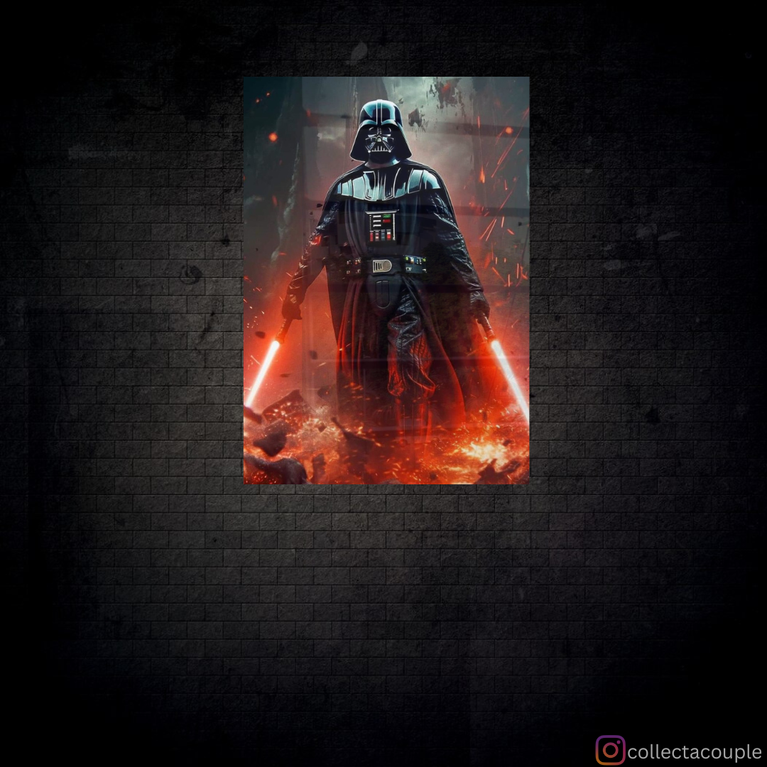 Our "Darth Vader in Action" Acrylic Poster, a powerful depiction of the iconic Sith Lord from the Star Wars universe. This stunning poster captures Darth Vader in the midst of action, showcasing his formidable presence and mastery of the dark side of the Force.