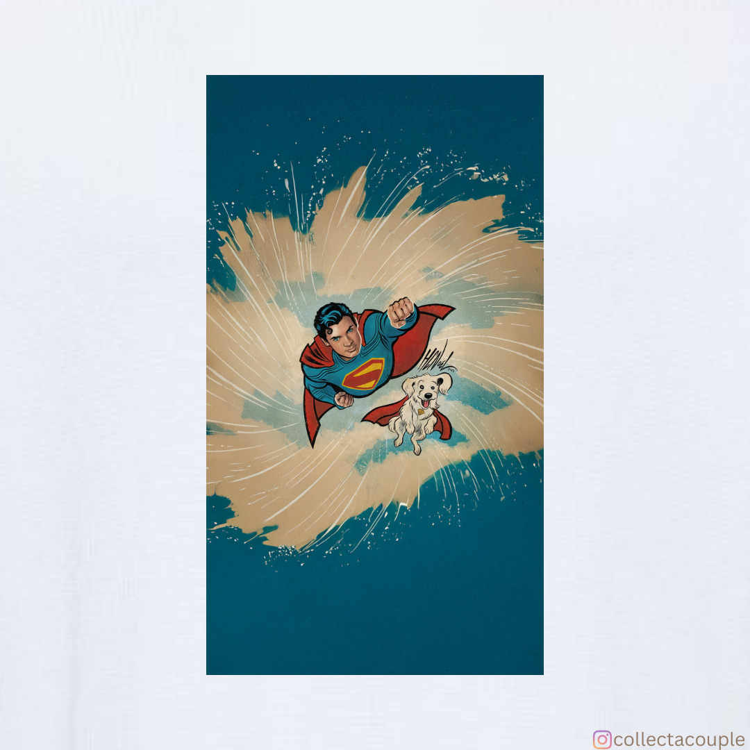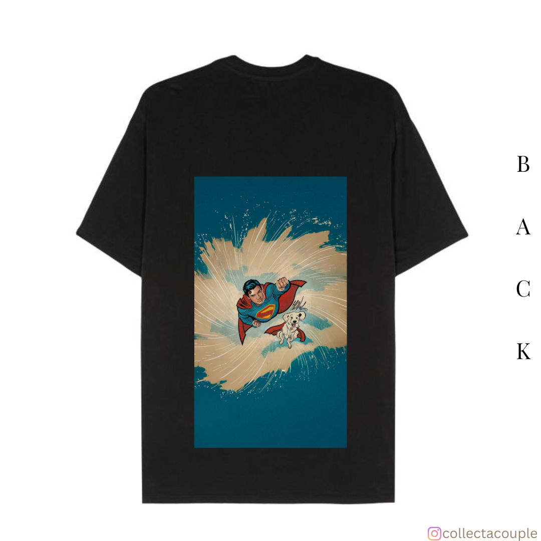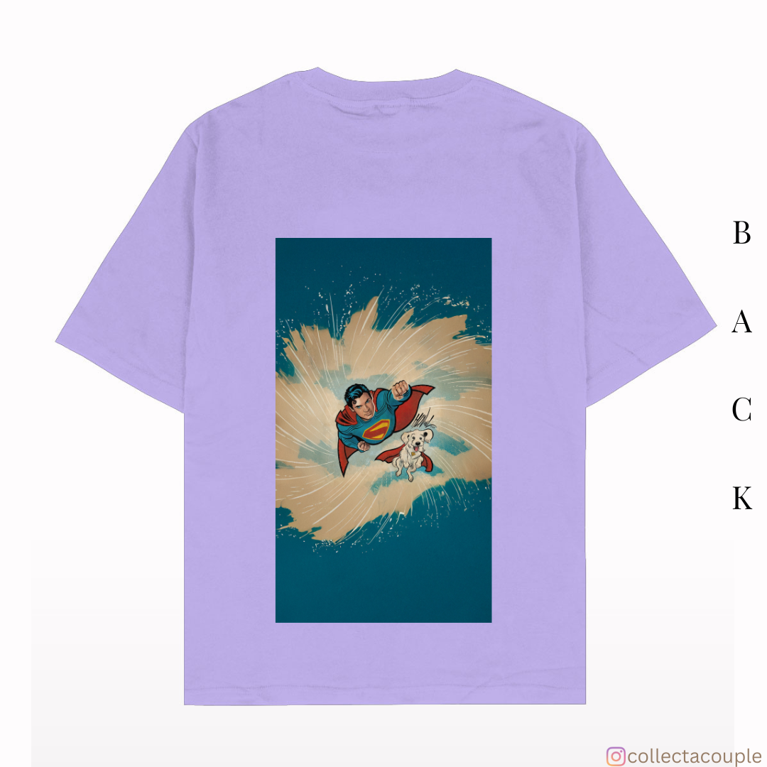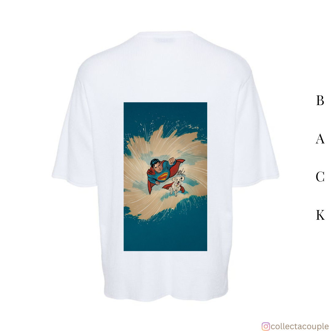 Superman: Superman and Krypto Illustration Oversized Unisex T-shirt (front and back print)