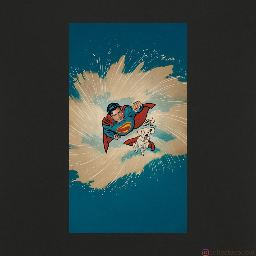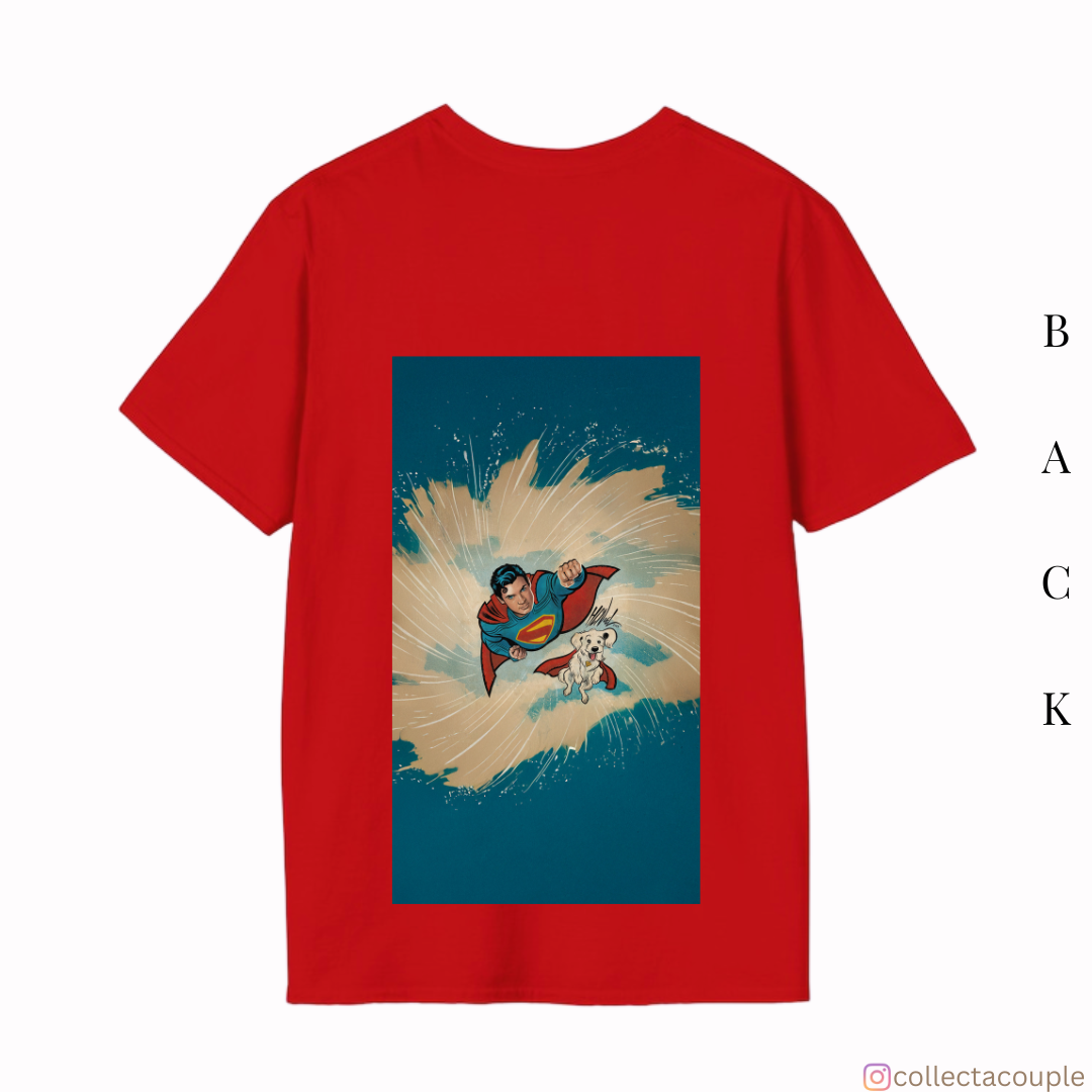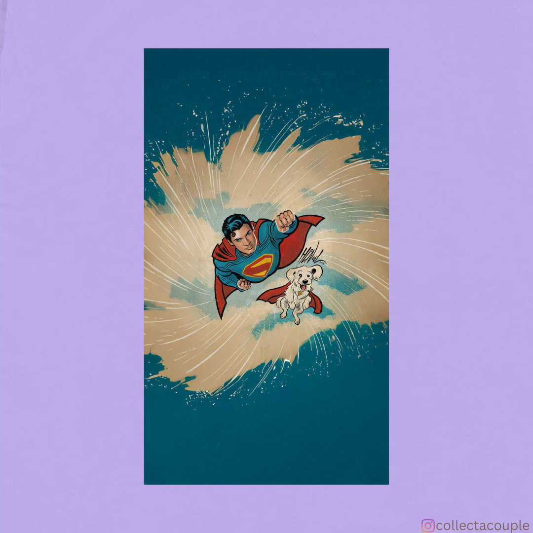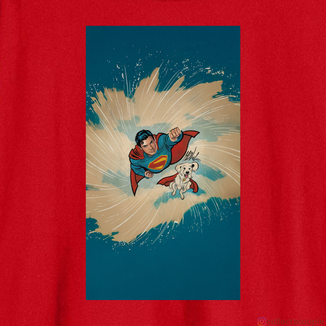 Superman: Superman and Krypto Illustration Oversized Unisex T-shirt (front and back print)
