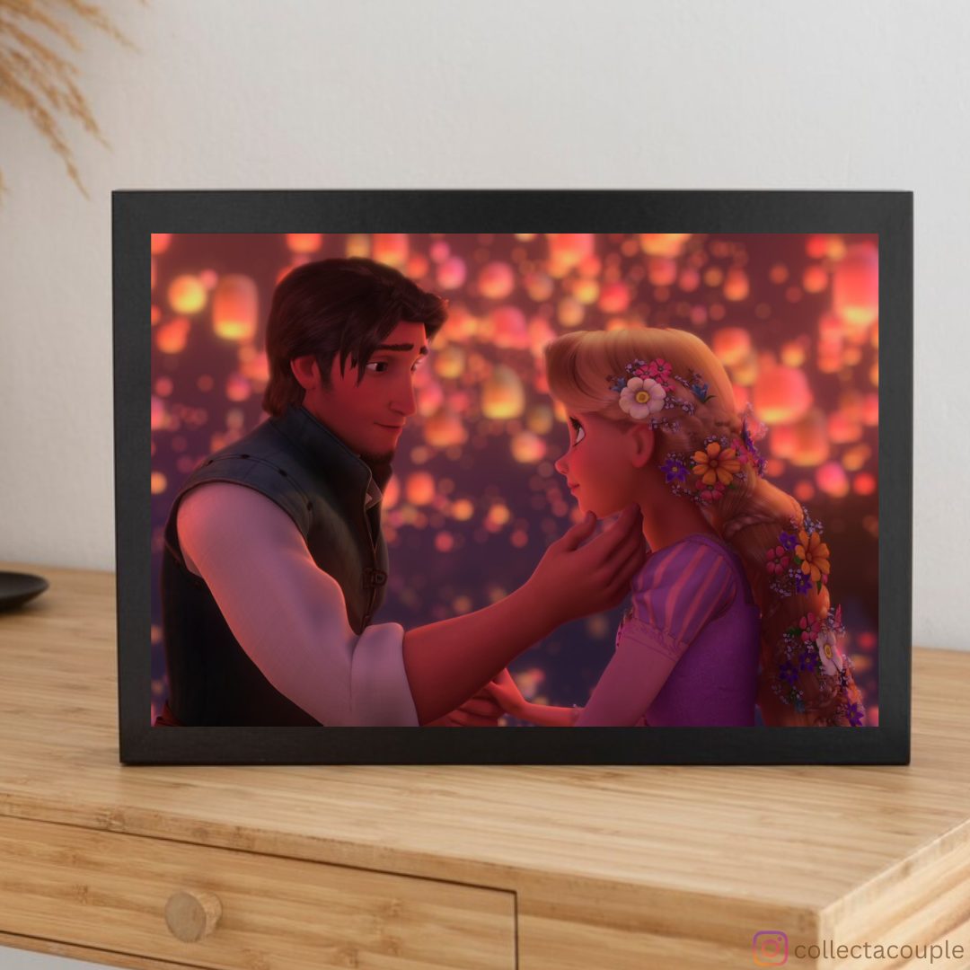 Unveil the magic of Disney's "Tangled" with our enchanting poster featuring Rapunzel and Flynn Rider under the lanterns. This vibrant and captivating design brings to life the beloved characters from the animated classic, capturing the whimsy and adventure of their fairy tale journey.