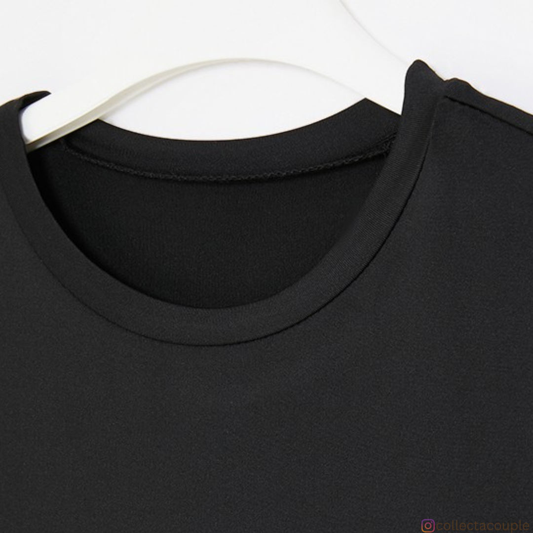 Available in classic black or white, it features a sleek, minimalist design that pairs effortlessly with any outfit. The round neckline and regular fit ensure all-day comfort, making it an ideal choice for any activity, from lounging at home to hitting the gym or heading out for a casual day.