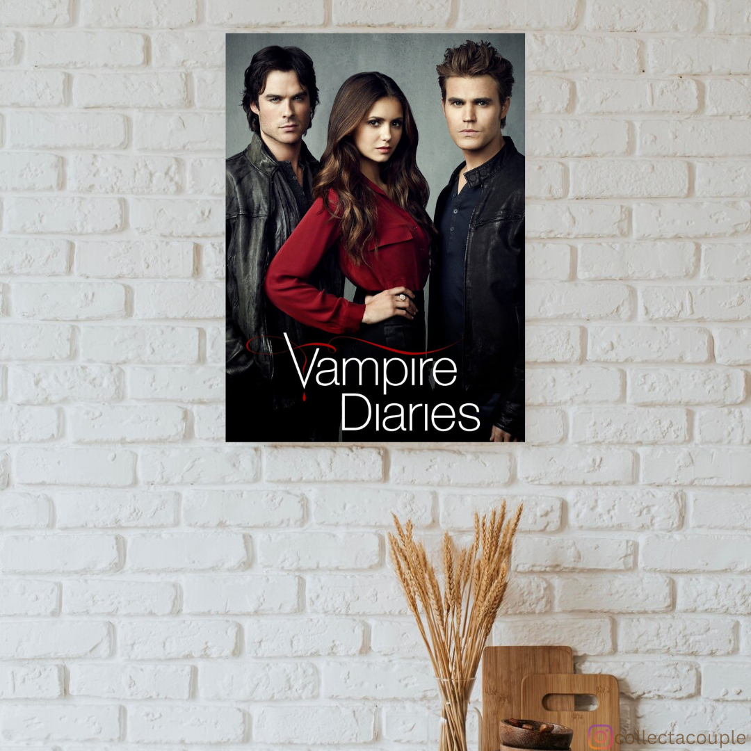 Dive into the mystical world of "The Vampire Diaries" with our stunning Trio Poster, featuring the iconic characters Elena, Damon, and Stefan, capturing the intense emotions and captivating dynamics of the beloved series, showcasing the trio's unforgettable chemistry and dramatic storyline.