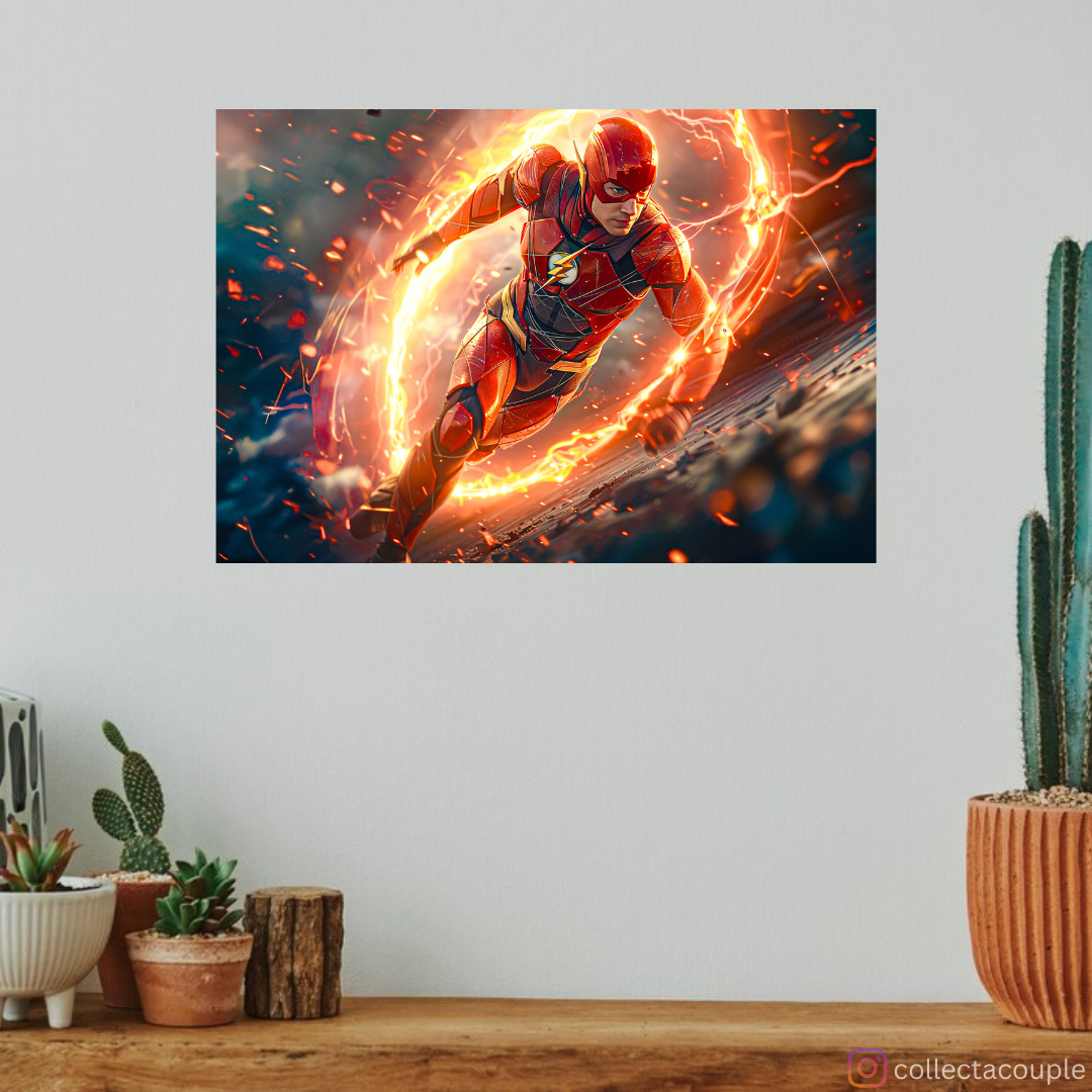 Zoom into the electrifying world of DC Comics with our dynamic "The Flash" movie poster, capturing the speed, excitement, and heroic spirit of the Scarlet Speedster as he races against time to save the multiverse. Immerse yourself in the adrenaline-fueled adventure as Barry Allen harnesses the power of the Speed Force to battle villains, unravel mysteries, and confront his own destiny. Whether you're a fan of superhero action or thrilling escapades, our artwork invites you to join the fastest man alive on a journey through time and space.