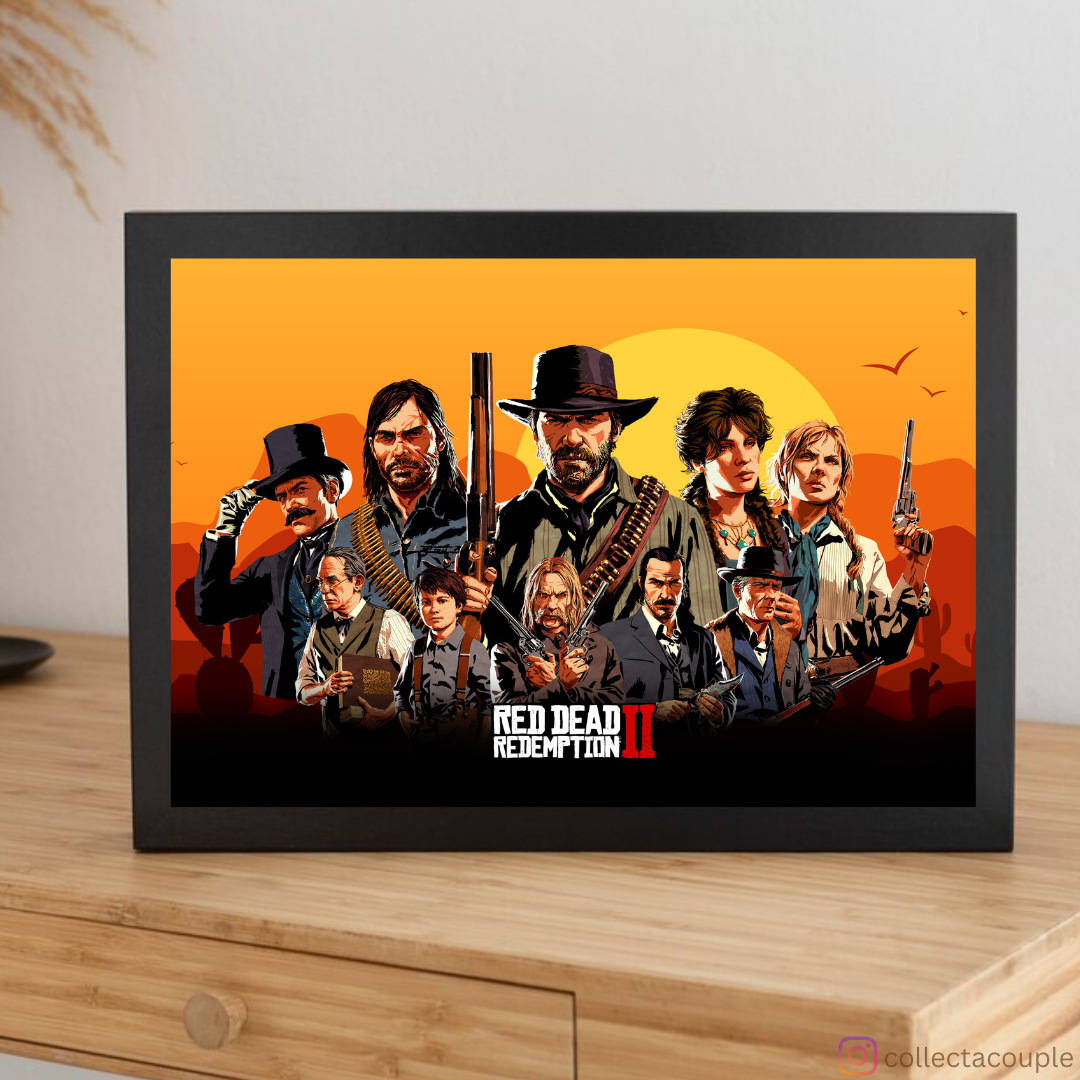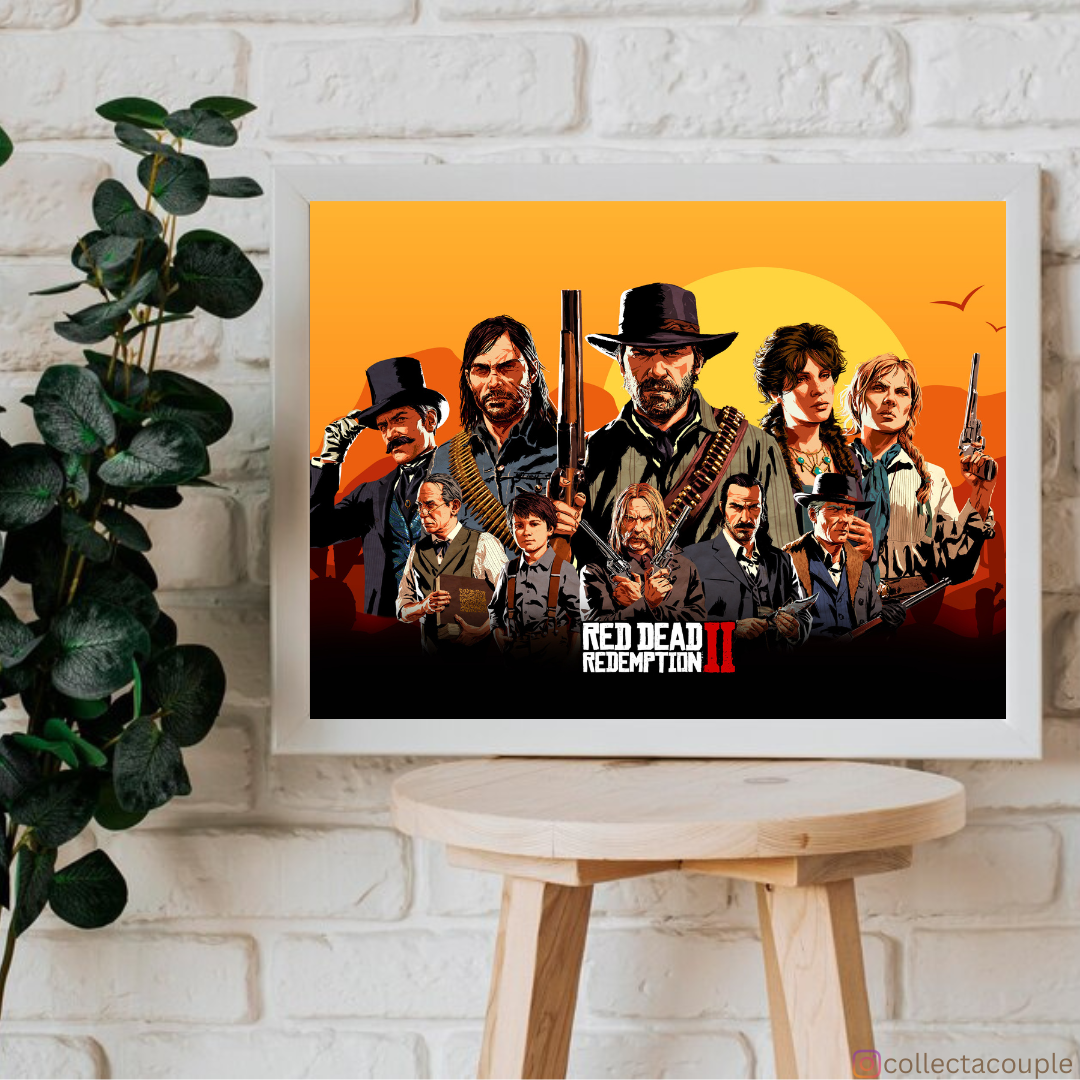 Immerse yourself in the epic world of the Wild West with our Red Dead Redemption Cast Poster. Featuring the iconic characters from the critically acclaimed video game, the poster brings to life the rugged charm and intense personalities of characters like Arthur Morgan, John Marston, and Dutch van der Linde. Each character is meticulously depicted, capturing the essence of their roles in the gripping narrative.
