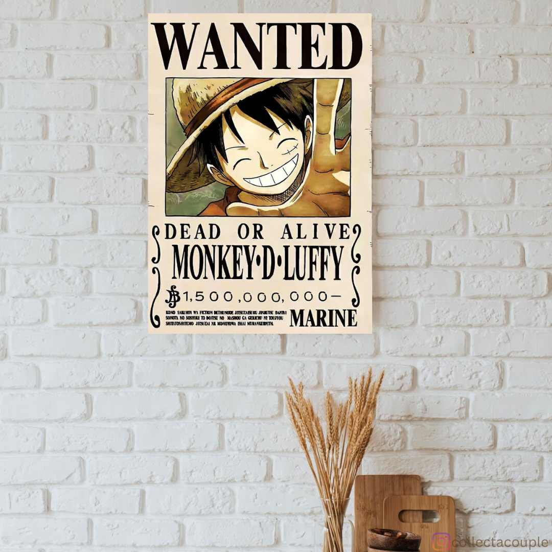 Embark on an adventure with your very own Monkey D. Luffy wanted poster! Channel your inner pirate and bring the world of One Piece to life with this iconic piece of memorabilia. Featuring Luffy's trademark grin and bounty details, our posters are perfect to evelvate your walls.