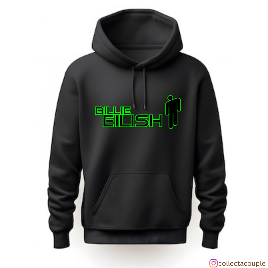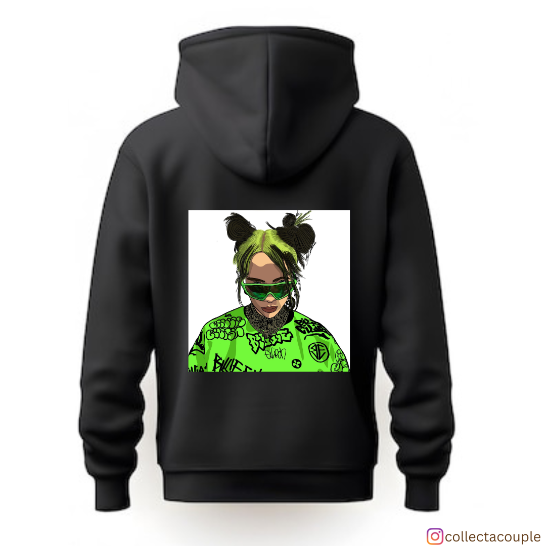 Billie Eilish: Illustrated Green Unisex Hoodie (front & back print)
