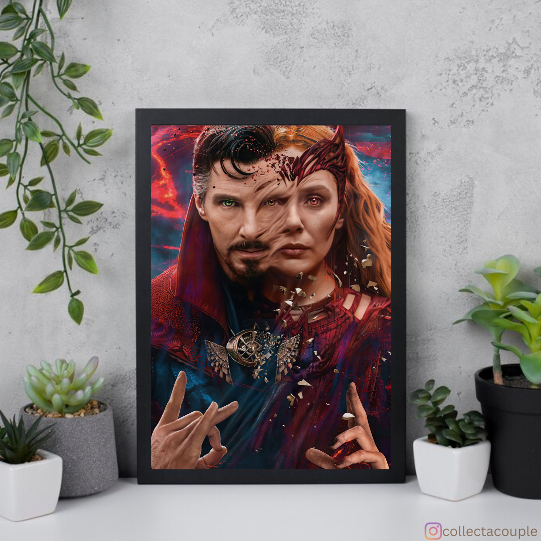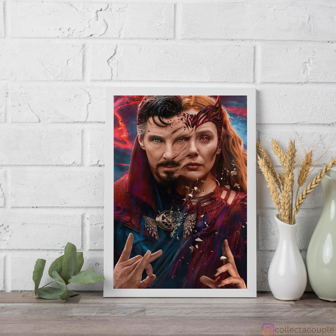 Step into the mystic realm with our exclusive Multiverse of Madness Scarlet Witch & Doctor Strange Split Face Poster. This poster merges the enigmatic energies of Scarlet Witch and Doctor Strange into a mesmerizing split-face design.