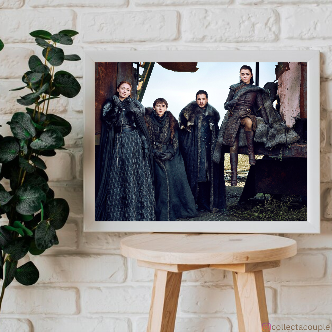 Honor the legacy of House Stark with our stunning Game of Thrones Stark Siblings Poster, featuring Sansa, Arya, Jon, and Bran. This poster beautifully captures the resilience, courage, and loyalty of the Stark family as they navigate the treacherous world of Westeros.