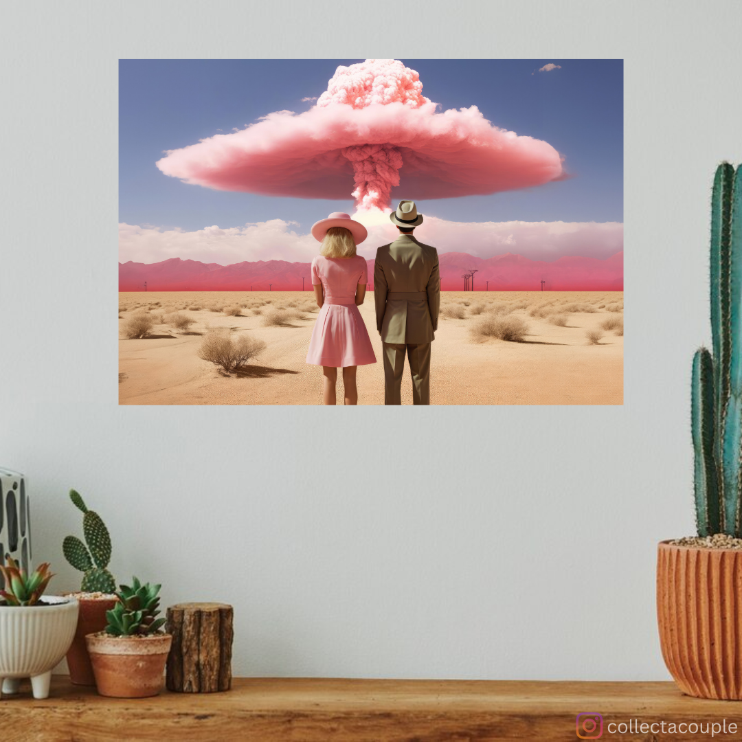 Introducing the Barbie x Oppenheimer Pink Blast Poster—a bold and unique fusion of two iconic worlds! This poster combines the vibrant, glamorous style of Barbie with the intense, dramatic flair of Oppenheimer, creating a visually stunning piece inspired by the popular BarbenHeimer!