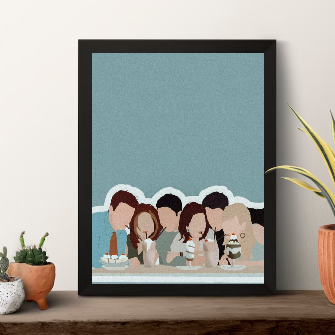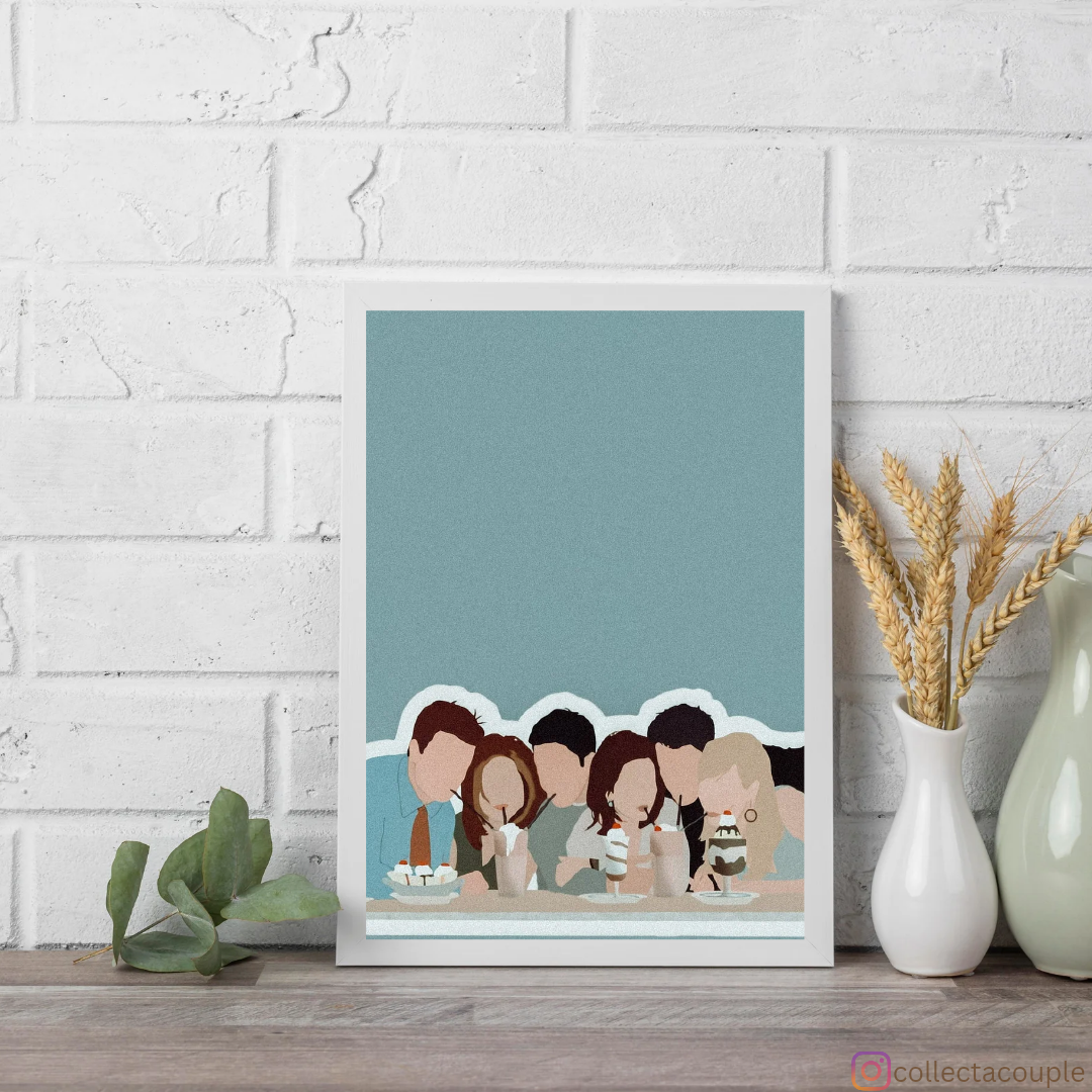 Step into the colorful and vibrant world of Central Perk with our exclusive Friends poster, beautifully illustrated to capture the essence of the iconic sitcom and its beloved characters. Featuring Ross, Rachel, Chandler, Monica, Joey, and Phoebe in a whimsical and playful style, this artwork is a delightful tribute to the timeless humor and camaraderie that defined the show.