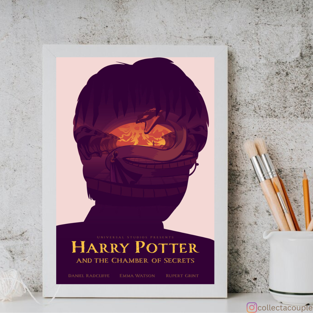 Step into the enchanted world of Hogwarts School of Witchcraft and Wizardry with our exclusive Harry Potter and the Chamber of Secrets collage poster. As the second installment in the beloved series, this artwork offers a magical journey through the mysteries, adventures, and dangers that await Harry, Ron, Hermione, and their friends as they uncover the secrets hidden within the ancient castle's walls.