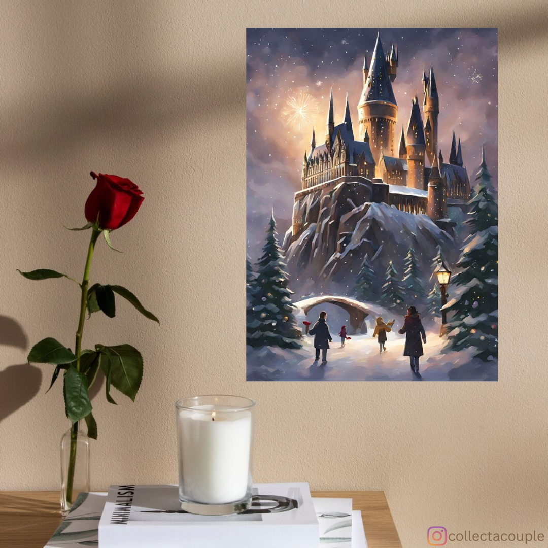 Step into a world of enchantment and wonder with our breathtaking Harry Potter poster featuring a snowy Hogwarts Castle. As the magical school of witchcraft and wizardry is blanketed in a shimmering layer of snow, this artwork captures the beauty, tranquility, and timeless charm of the wizarding world during the winter season.