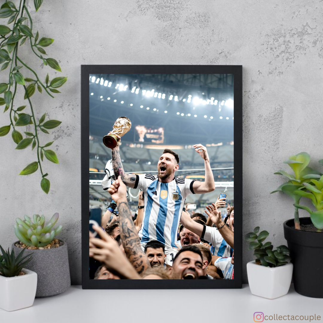 Relive the excitement and drama of one of the most memorable matches in football history of Argentina Vs France with our exclusive Messi GOAT Poster.