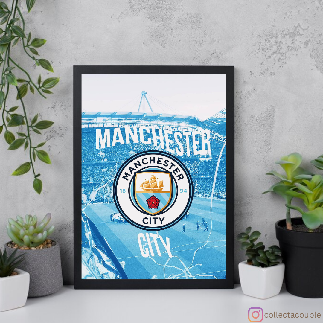 Step into the world of football greatness with our dynamic Manchester City poster, celebrating the storied legacy and unrivaled success of one of England's most iconic football clubs. From thrilling victories on the pitch to unforgettable moments of triumph, Manchester City has captured the hearts of fans around the globe with its exhilarating style of play and unwavering dedication to excellence. Join us as we pay tribute to the champions of the city and the indomitable spirit of Manchester City Football Club.